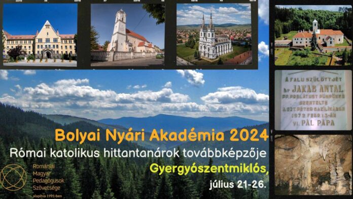 A Romániai Magyar Pedagógusok Szövetsége idén is megszervezi a Bolyai Nyári Akadémiát, amelynek programsorában helyet kap a római katolikus hittantanárok továbbképzője is. Egyházmegyéink hitoktatásért felelőseinek közös megállapodása szerint egyik évben a gyulafehérvári főegyházmegye, másik évben egy „kis” egyházmegye szervezi a BNYA jelzett szekciójának programjait. Az idén a főegyházmegyén van a sor, azon belül pedig a Gyergyó kerületi főesperesség és a gyergyószentmiklósi Salamon Ernő Gimnázium a házigazda.