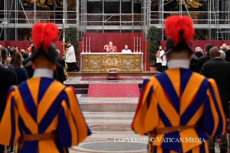 Temetési szertartását november 27-én 14 órakor tartották a Szent Péter-bazilika Katedra-oltáránál. A liturgiát Giovanni Battista Re bíboros, a Bíborosi Kollégium dékánja vezette, bíborosok, érsekek és püspökök koncelebrálásával. A szentmise végén Ferenc pápa végezte el a végső ajánlás (ultima commendatio) és a búcsúvétel (valedictio) szertartását.