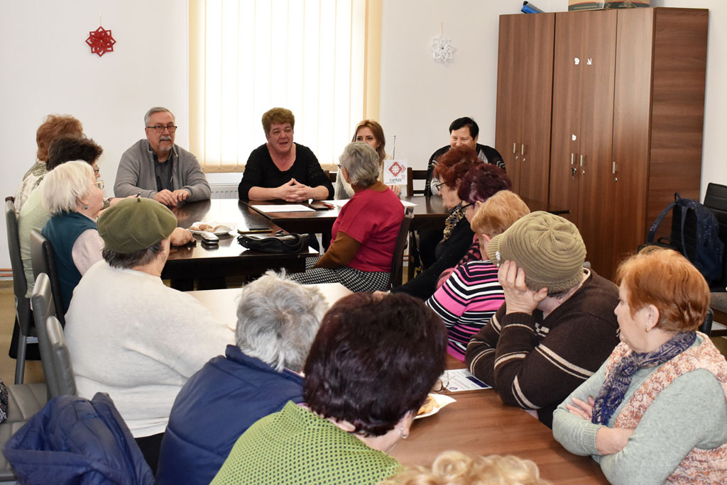 A legutóbbi találkozó alkalmával Kincses Angéla szociális munkás, a Caritas szatmárnémeti Szent Jakab Idősnapközijének vezetője tartott interaktív előadást az időskorról. A szakember célja az volt, hogy a résztvevőkkel együtt feltárja az időskor negatív oldalai mellett a pozitívakat is, és arra buzdítson mindenkit, hogy igyekezzen a jó dolgokat előtérbe helyezni.