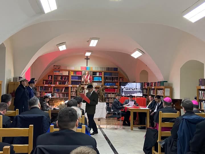 Mindezek után a szemináriumban tanuló kispapjai beszédekkel és egy rövid előadással köszöntötték a főpásztort. Törhetetlenül címen tiszteletreméltó Márton Áron püspök életútjának jelentősebb mozzanatait mutatták be.