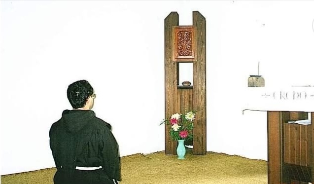 A képen látható szerzetes nem menekülésből vonult el a világ zajától, hanem azért, hogy visszataláljon a lényeghez. Térdel a szentségi Jézus előtt, mert tudja: a valódi béke nem a világi élmények habzsolásában, hanem az Istenben való megnyugvásban rejlik. Az Oltáriszentségben jelen lévő Krisztus nem egy távoli, elvont fogalom, hanem a legszemélyesebb valóság. A szerzetes minden vágyat, kérdést, örömet és fájdalmat elé viszi – nem azért, mert mindent értene, hanem mert bízik.