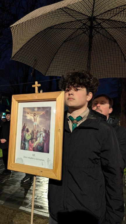 Virágvasárnap előtti pénteken, április 11-én, este 8 órától tartották Szatmárnémeti főterén a városi keresztutat, a világiak irodája és az ifjúsági iroda szervezésében. Az esős, hideg áprilisi idő ellenére sok hívő gyűlt össze az imára a székesegyház előtti téren. Nemcsak a város plébániáiról érkeztek zarándokok, hanem az egyházmegye különböző településeiről is. A hívekkel együtt imádkozott Schönberger Jenő megyés püspök, valamint azok a plébánosok, akik elkísérték híveiket erre az imaalkalomra.