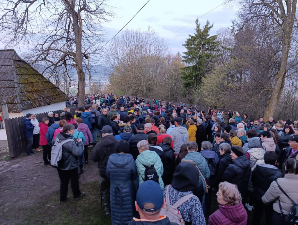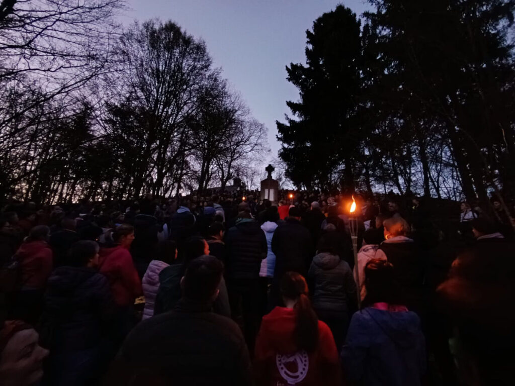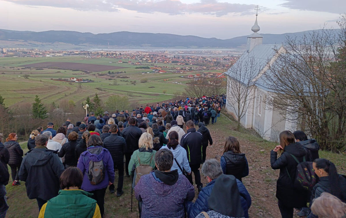 Idén is, mint minden évben, több százan vettek részt a hagyományos nagypéntek hajnali öt órakor szervezett keresztúti ájtatosságon a csíksomlyói kálvárián, a Jézus-hágóján. A közös imádkozásra gyertyákkal és fáklyákkal érkeztek fiatalok és idősebbek, együtt imádkozva, énekelve járták végig a Kissomlyó oldalán levő stációkat, Közép-Kelet Európa egyik legismertebb és legnehezebb kálváriáját.