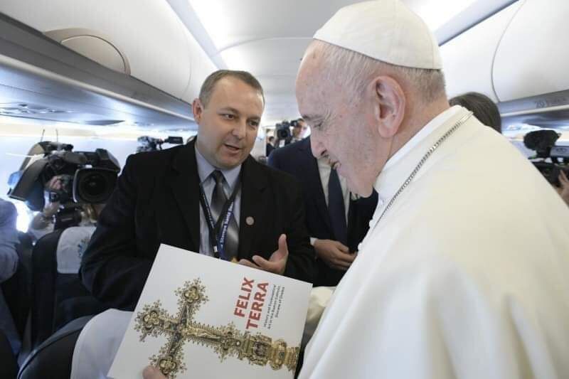 Nagy kegyelem volt számomra a 2019-es esemény, tavaly, öt év távlatából, rendkívüli módon emlékeztem meg a pápalátogatásról. A repülőút során két alkalommal is találkozhattam és beszélgethettem Ferenc pápával, először az újságírók köszöntésekor, egy teljesen emberközeli párbeszédben, majd a visszaúton Nagyszebenből Rómába, a hivatalos sajtótájékoztatón, amikor kérdést is intézhettem az egyházfőnek. Megmaradt emlékezetemben az ő személyhez szóló válasza, őszinte tekintete abban a néhány percnyi – bár formális, mégis személyes – párbeszédben. A válasz nekem, a kérdezőnek szólt, nem a sajtónak. Il comportamento della mano tesa, sempre – a mindig kinyújtott testvéri kar magatartása, ez kell hogy jellemezze a romániai, erdélyi híveket – tanácsolta. Majd spontánul, kérdés nélkül Erdély szépségét dicsérte a pápa, aki Szent Péter székében való szolgálatának első pillanataitól a teremtett valóság megóvására intett minket.