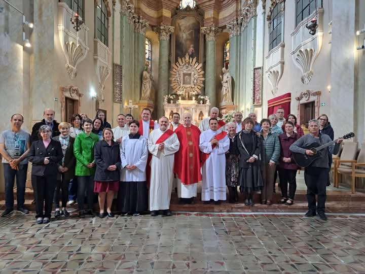 Tekintettel a feltámadásünnepet követő „fényes” hétre, a képzők egy nehemiási idézetet – „Az Úrban való öröm a mi erősségünk.” (Neh 8,10) – választottak mottóként. A húsvéti öröm jegyében zajlott alkalom a kegytemplomban bemutatott szentmisével kezdődött, amelynek elején Dirschl Johann általános helynök köszöntötte a résztvevőket. Az eredeti tervek szerint a szentmisét Pál József Csaba megyés püspök celebrálta volna, de mivel Ferenc pápa temetésére Rómába utazott, ezt a szolgálatot Szilvágyi Zsolt pasztorális helynökre ruházta át, ő olvasta fel a főpásztor előre megírt, a napi evangéliumhoz igazított prédikációját is. A Feltámadott és apostolainak Tibériás tavánál való találkozására utalva a püspök hangsúlyozta, hogy csak a szeretet képes felismerni az Urat, az a szeretet, amelyik a különbözőségeinkre értékként tekint, és amelyik egységbe hív. „Rászorulunk egymásra. A katekéták a papokra és püspökökre, a püspökök és papok a katekétákra. Kiegészítjük egymást. Kedves testvéreim, együtt húzzuk a partra a hálót! Ha közöttünk egység van, egymás szeretetben való kiegészítése, akkor az Úr gondoskodik, hogy tele hálót húzzunk a partra” – zárta gondolatait a főpásztor.