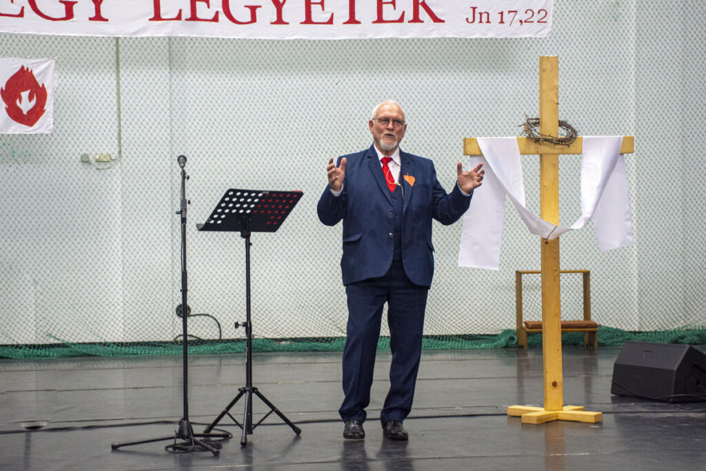 Az egy órás szentségimádás alatt többen is imádkoztak, hálát adtak és Jézus elé vitték személyes kéréseiket. Talán a legmeghatóbb egy nagycsaládos ima volt, amikor a szülők hét gyermekükkel hálát adtak mindenért. Ezután következett a lelki nap befejező része, az ünnepi hálaadó szentmise, amelynek a főcelebránsa Darvas-Kozma József pápai káplán, címzetes esperes, plébános volt. Negyven perces prédikációjának fő gondolata: „A remény nem csal meg” (Róm 5,5). Több témát, példát is felvonultatott ennek igazolására. Beszélt a történelmi időkről, a kommunizmus térhódításáról, Léstyán Ferenc érseki helynök, egyháztörténész és Márton Áron püspök meghurcoltatásáról. Néhány gondolat, a teljesség igénye nélkül: Egész keresztény életünk egy edzés. Kell gyakorolni a türelmet, elfogadni a másikat olyannak, amilyen. A halálunkra fel kell készülni, hiszen, előbb-utóbb eljön. Majd elmesélte személyes példáját, amikor a Covid alatt nagyon beteg volt, már felkészült a halálára, imádkozott az őrangyalához és utána megfordult a betegsége. De tudomásul vette, hogy a földi pálya egyszer véget ér, ám nem fél a haláltól, mert ott fenn várják. „Krisztus a mi reményünk. Ebben a hitben kell élnünk” – bátorította a jelenlevőket és a Mária Rádió hallgatóit Darvas-Kozma József.