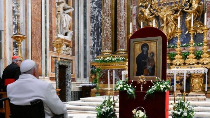 „Mielőtt útra kelek, és amikor visszatérek, mindig meglátogatom a Szűzanyát, a Salus Populi Romanit, hogy elkísérjen utamon anyaként – hogy megmondja, mit tegyek, vigyázzon szavaimra és tetteimre. A Szűzanyával biztonságban indulok el.” – magyarázta Ferenc pápa.