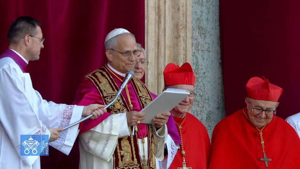 A Szent Péter-bazilika erkélyén a protodiakónus, Dominique François Joseph Mamberti bíboros, az Apostoli Szignatúra Legfelsőbb Bíróságának prefektusa latin nyelven hirdette ki az új egyházfő keresztnevét, majd elhangzott a pápai név is. Szent Péter 267. utóda, Robert Francis Prevost OSA a XIV. Leó nevet választotta.