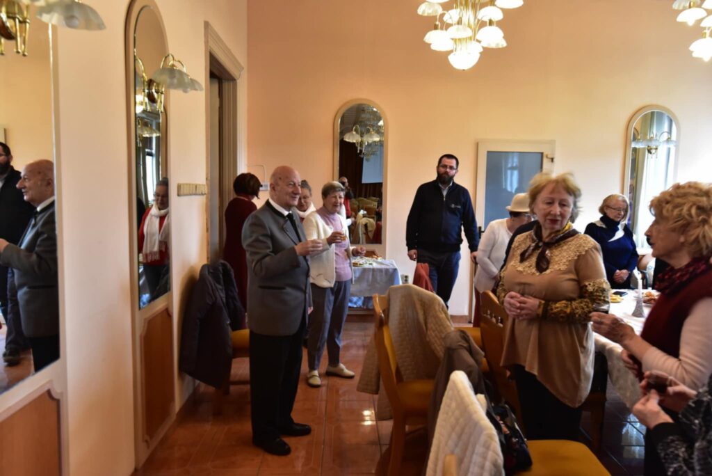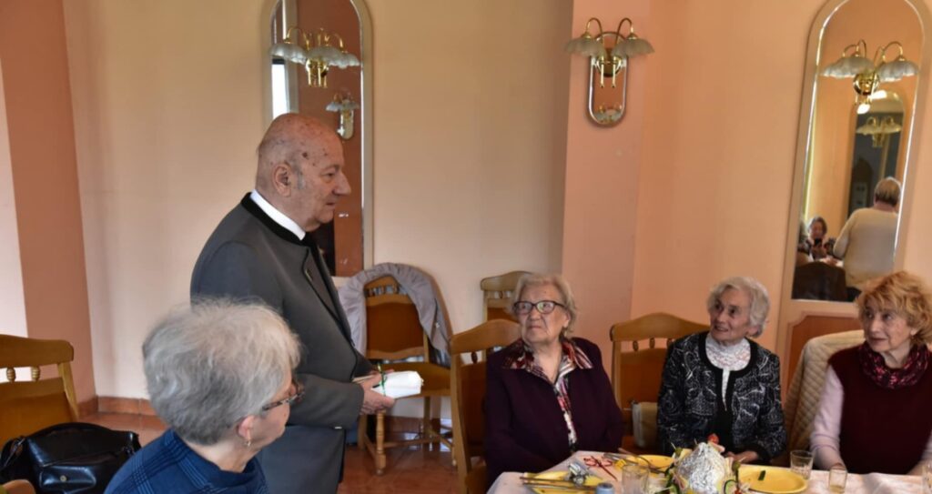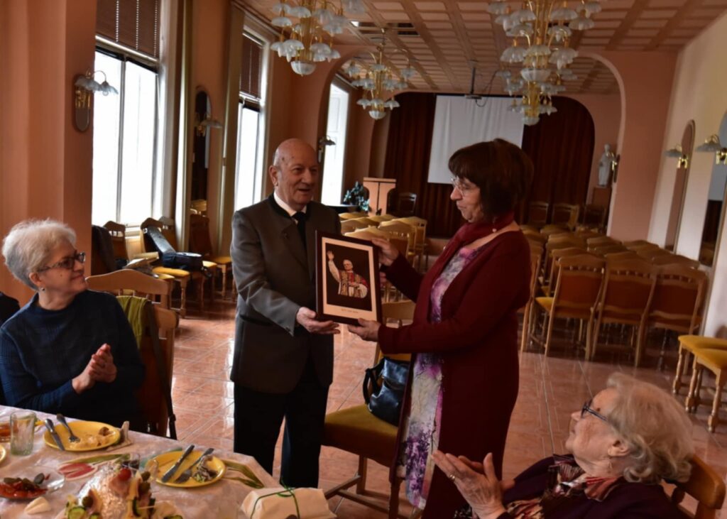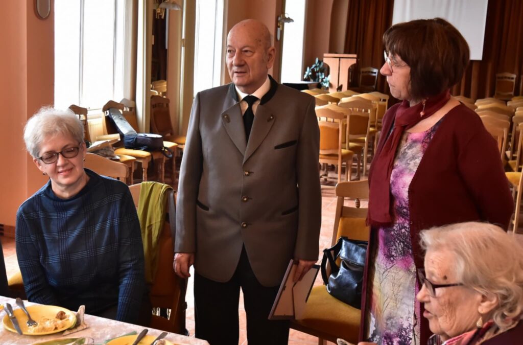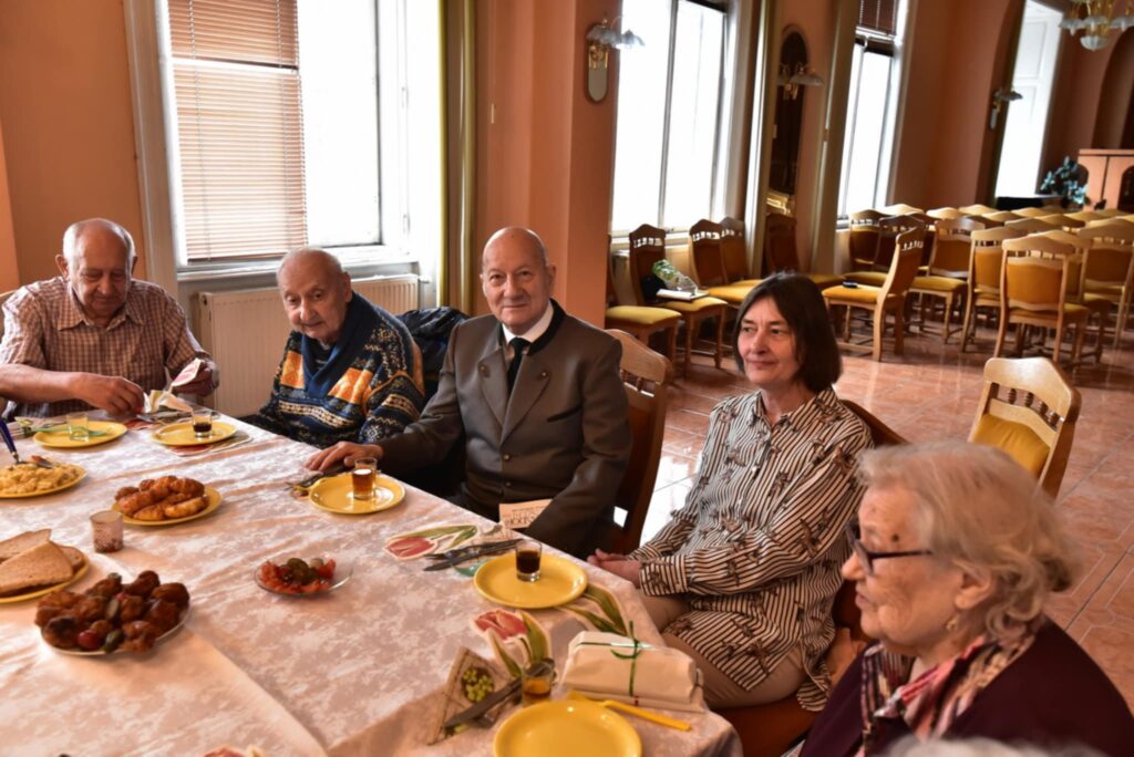 A meghatottságot vidámság követte, az öröm olykor könnyeket csalt a szemekbe. Eljöttek ünnepelni a piarista öregdiákok is, és az összegyűltek énekkel köszöntötték a 80 éves örökifjút, aki a születésnapi tortát a kilencvenes éveit taposó örökifjú Balogh Gizellától, a nőszövetség korábbi elnökétől vehette át.