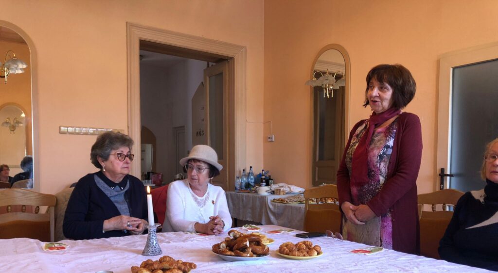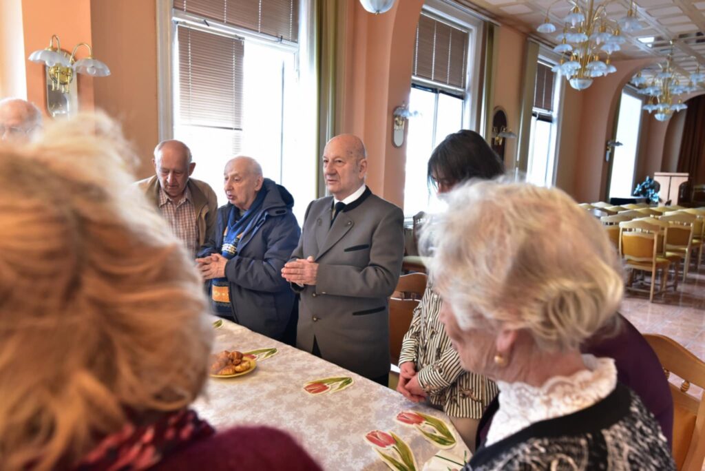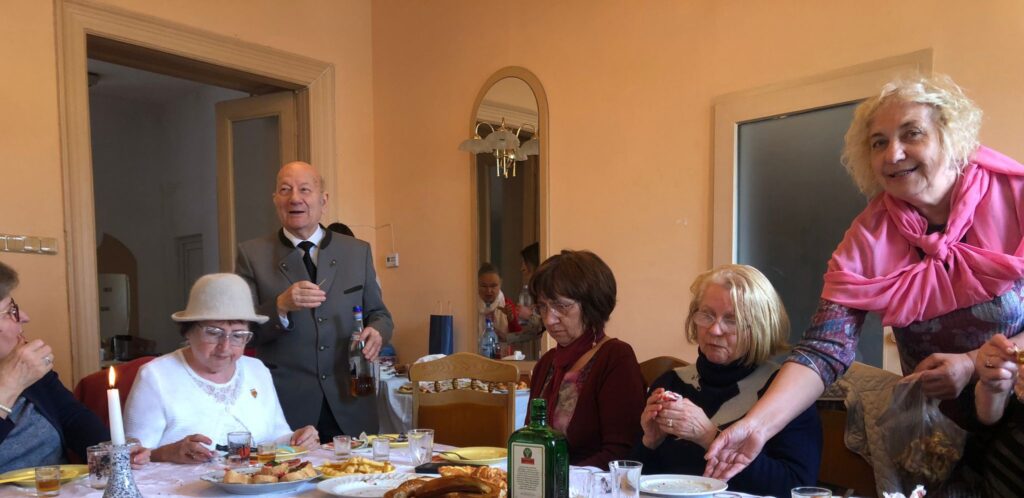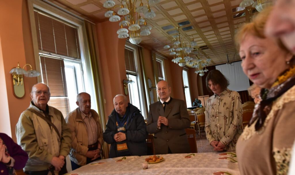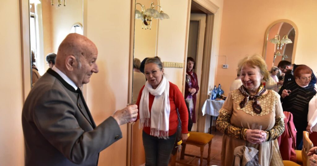 A meghatottságot vidámság követte, az öröm olykor könnyeket csalt a szemekbe. Eljöttek ünnepelni a piarista öregdiákok is, és az összegyűltek énekkel köszöntötték a 80 éves örökifjút, aki a születésnapi tortát a kilencvenes éveit taposó örökifjú Balogh Gizellától, a nőszövetség korábbi elnökétől vehette át.