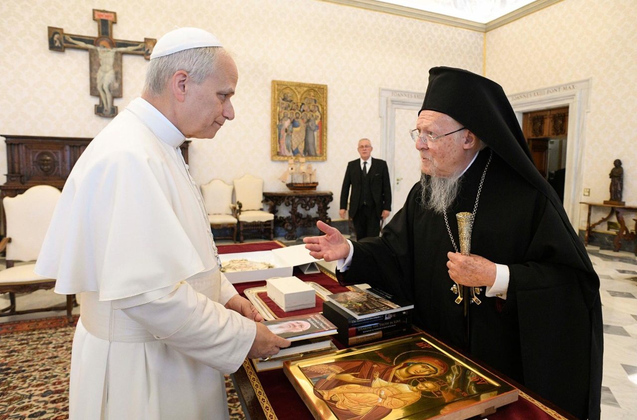 XIV. Leó pápa hétfőn délelőtt az Apostoli Palotában fogadta audiencián a konstantinápolyi ökumenikus pátriárkát, akivel együtt ismét hangsúlyozta az ortodox és a katolikus egyház közötti teológiai párbeszéd előmozdításának és elmélyítésének fontosságát, valamint a béke és a környezetvédelem iránti elkötelezettséget.