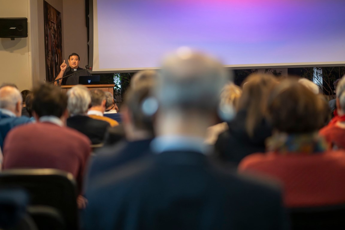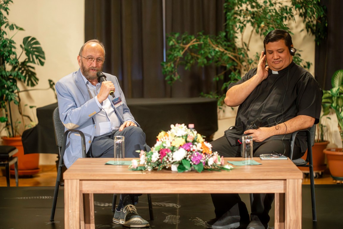 A mesterséges intelligencia mibenlétét, működését, pozitívumait és árnyoldalait ismertette bevezető előadásában Robert Ballecer amerikai jezsuita. Miközben a technológiai szakértő példákkal demonstrálta az MI zavarbaejtően ügyes kép- és szövegalkotó képességét, azt is bemutatta, hogy az nem egy gondolkodó gép. A jelenlegi MI-k egy elképesztően hatalmas adatbázisból dolgozó, az emberi visszajelzésekből tanulni képes nyelvi modellek, amelyek az információk jellemző kontextusából valószínűségszámítással alkotják meg válaszukat. Ezért fontos, milyen információkon tanítjuk és hogyan kérdezünk tőle, illetve milyen visszajelzést adunk a válaszaira. Hatékony eszköz nemcsak fordításra, írásra és illusztrációk alkotására, de betegségek diagnosztizálására, kódolásra és még az emberkereskedelem elleni küzdelemre is.