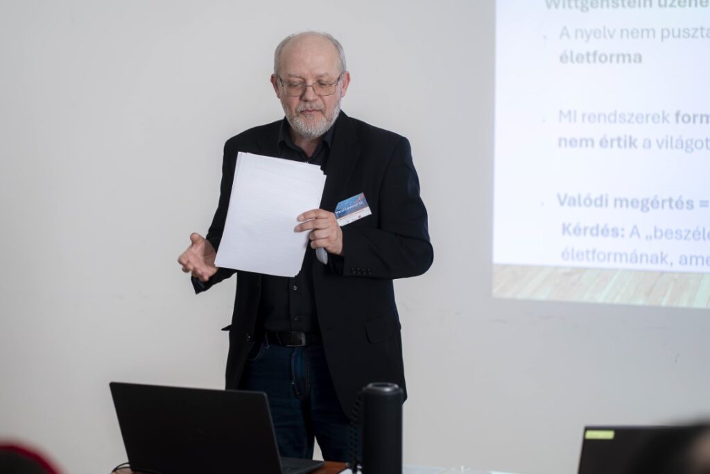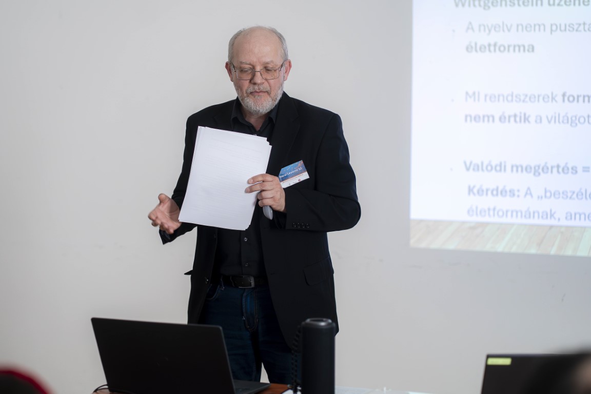 Ludwig Wittgenstein meglátása szerint a nyelv nem pusztán kommunikációs eszköz, hanem életforma, a világértelmezésünk és társas viszonyaink alapja. Harai Levente szerint épp az különbözteti meg az embert az MI-től, hogy képes a nyelvtani szabályszerűségek elsajátításán túl jelentést és értéket is tulajdonítani, részt venni az úgynevezett nyelvjátékban. Herbert Marcuse pedig arra figyelmeztetett, hogy a technológia eszköz a társadalmi rend fenntartóinak kezében: elnyomja a kritikus gondolkodást, a szabadság látszatát keltve fogyasztói logikát erőltet ránk. Miközben az emberi méltóság a kíváncsiság, a reflexió és a felelősségvállalás képességében rejlik. Mielőtt démonizálnánk a technológiát, Harai Levente emlékeztetett: az MI csupán a mi döntéseink irányát tükrözi válaszaiban.