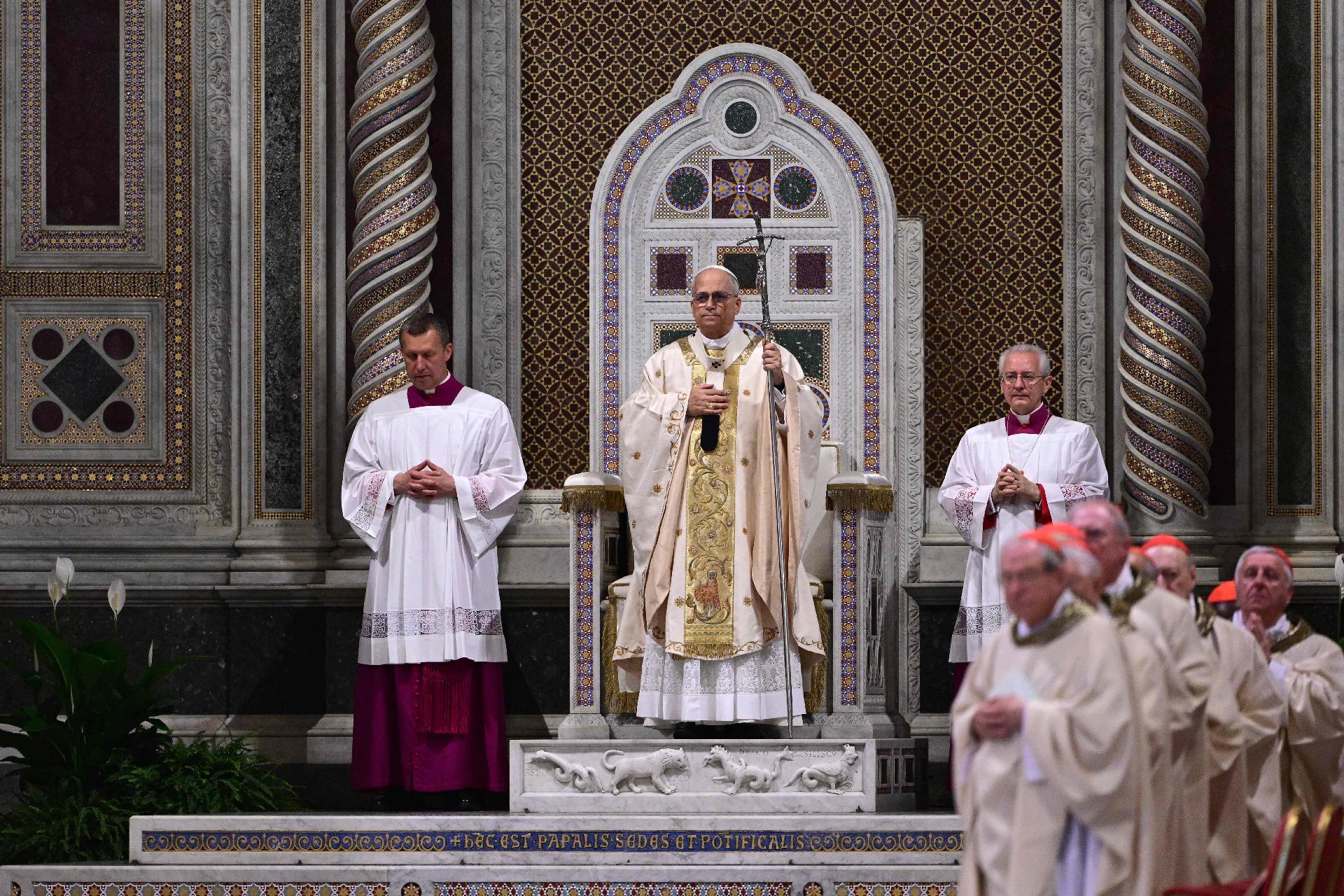 Leó pápa szeretettel köszöntötte a jelenlévő bíborosokat, püspököket, papokat és mindenkit, aki különböző minőségben együttműködik a római egyház közösségeinek lelkipásztori ellátásában. Róma egyháza nagy történelem örököse, amely Péter, Pál és számtalan vértanú tanúságtételében gyökerezik, és egyedülálló küldetéssel rendelkezik, amelyet jól kifejez a székesegyház homlokzatának felirata: „Mater omnium Ecclesiarum” (Minden templom anyja).