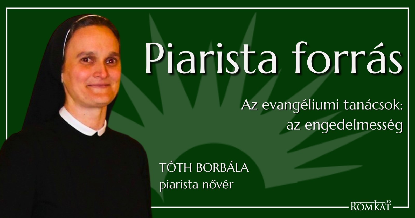 A Piarista Nővérek Konstitúciója szerint az engedelmesség isteni erényéhez úgy juthatunk közelebb, ha egészen, teljes szívünkből és lelkünkből és minden erőnkből elköteleződünk amellett, hogy Isten akaratát keressük, és ha megtaláltuk, akkor tehetségünk szerint a legjobban meg is valósítsuk. Jézus tanítványának legfőbb tulajdonsága kell legyen: az Isten akaratára való ráhagyatkozás. Engedjük, hogy egész életünkben a Jó Pásztor odavigyen bennünket a vállain, ahova ő akarja. Sok minden szól ez ellen, ha körülményeinket alaposan megvizsgáljuk. Kényelmetlenségekkel jár, hátrányt okoz a munkahelyünkön, és barátaink, sőt családtagjaink értetlenségével, sőt rosszallásával is szembe találhatjuk magunkat, s mindezt nagyon nehéznek érezzük. De ez az élet, amit élünk, az örökélet, amit Istentől ajándékba kaptunk. Életünknek ezt a távlatát, mélységét-közelségét, ezt az értékét nem volna szabad soha elfelejtenünk.