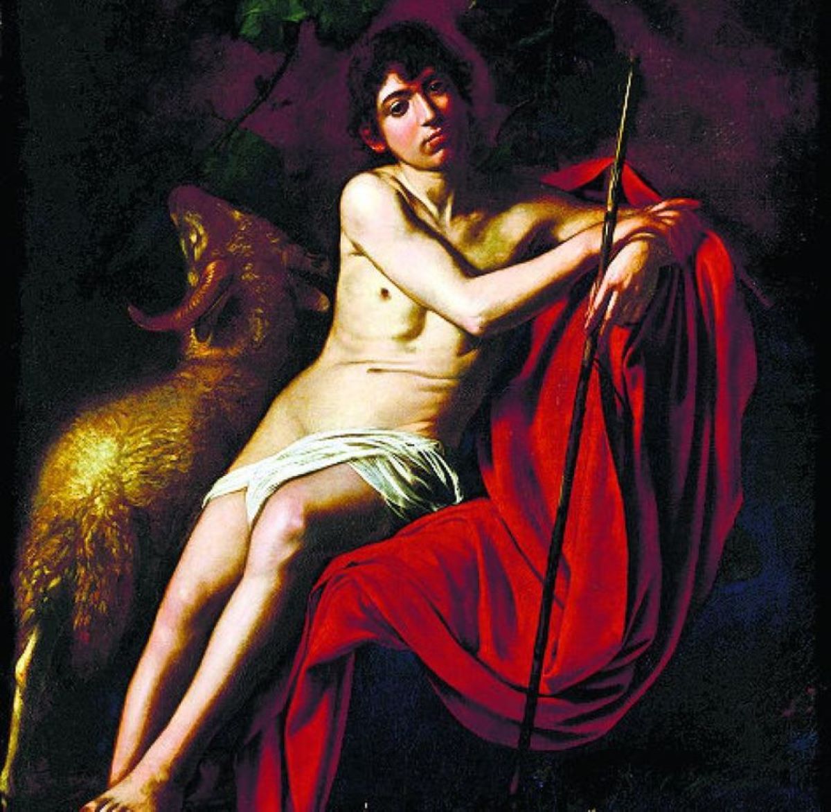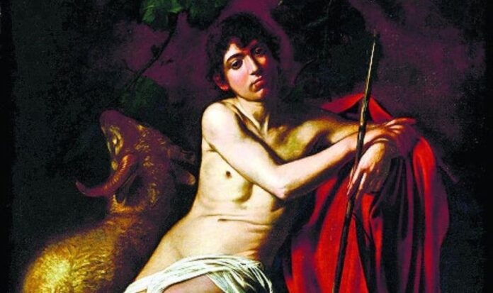 Caravaggio Keresztelő Szent János-festménye a szentet fiatal korában ábrázolja. A fiatal János gondolataiba mélyülve a semmibe réved. A művész talán azt a pillanatot ragadta meg, amikor a fiatal meghozza életre szóló döntését, és a pusztába vonul, elhagyva mindenét. Ennek jelképeként veti le ruháját, és veszi majd fel a teveszőrből készült ruhát. A vörös szín az életet és szeretetet jelképezi ezen a festményen, ami kiemeli a főalakot. A háttérben megjelenik a kos, amely utalás az eljövendő Isten Bárányára, akinek előhírnökeként áll előttünk Keresztelő Szent János. A kompozíció eredeti terve szerint egy könnyed ábrázolás lehetett volna, azonban a művész heves érzelmei hozzákapcsolódtak a küldetését felismerő prófétához. A szenvedéllyel együtt egyfajta tragikum is visszaköszön a festményen, amely szintén kapcsolódik Caravaggio életútjához, hiszen ezen alkotás tekinthető élete utolsó alkotásának. A művész, amikor munkáját készült a pápa elé vinni, a Rómába vezető úton életét vesztette. Ahogyan Keresztelő Szent János élete, az övé is korán ért véget.