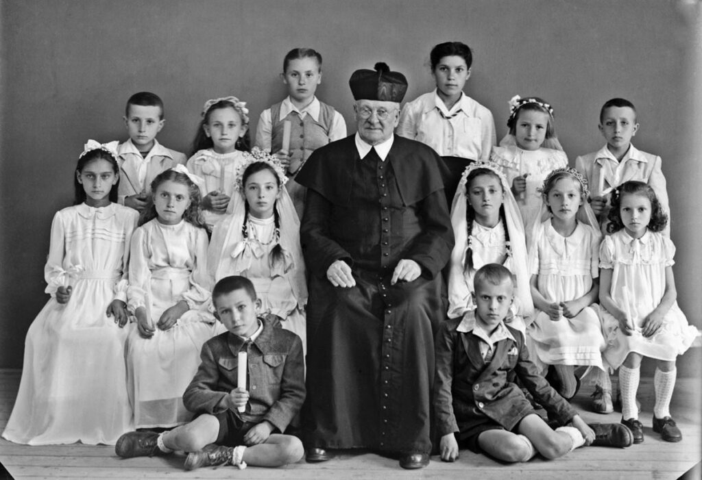 Egymásután léptek el előttünk, fel az emeletes lakásra a főpapok, mind lila díszben, nekem tetszőleg gőgös méltósággal. Csak egy nagy termetű és amint később megtudtuk, hatalmas eszű „cilinder”-es pap: Beke kanonok állott velünk szóba. Azt kérdezte: