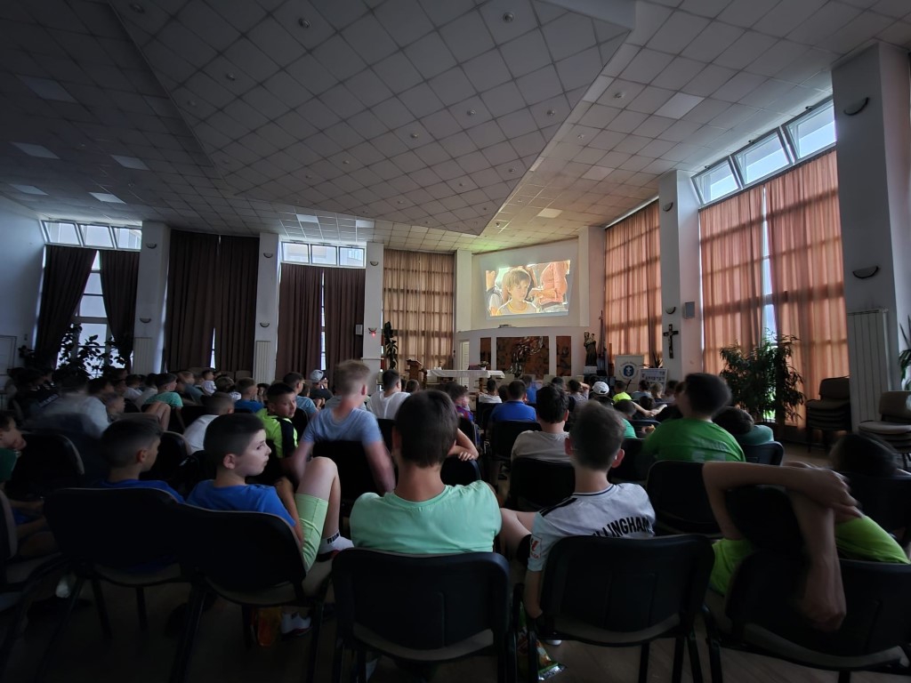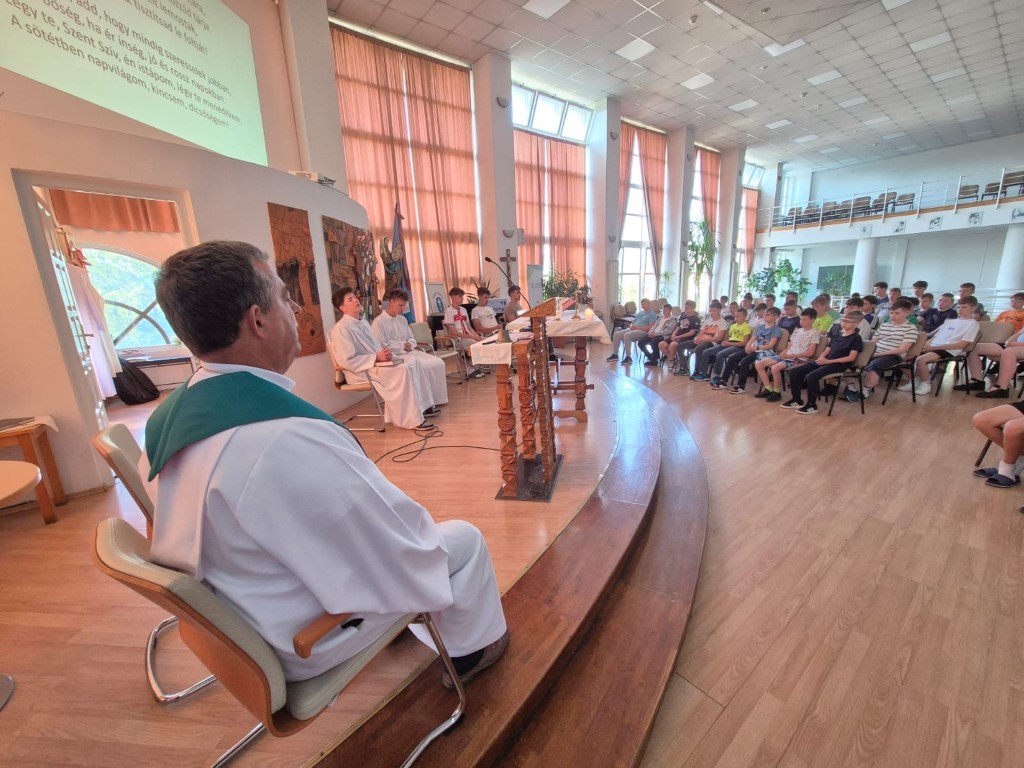 Megindító volt hallani a bátor és őszinte válaszokat, tanúságtételeket. A gyerekek tanúságot tettek Istenről, beszámoltak istenélményeikről, közösségükről, és arról is, milyen jövőről álmodnak. Ha annyi pap születik majd, ahányan ma erre vágytak, biztosan nem lesz paphiány. Sőt, még az is lehet, hogy egyszer erdélyi pápa is lesz, hiszen egyik kis zarándokunk e nagy álmot fogalmazta meg. Természetesen nem mindenki választotta a papi pályát – akadt, aki muzsikus, kántor, traktorista, ralis, vállalkozó, birkózó vagy éppen nagycsaládos édesapa szeretne lenni. Közös bennük, hogy megígérték: mindent meg fognak tenni céljaik eléréséért. A tanulságos és bizalmas hangulatú beszélgetést követően csoportjátékokkal folytatódott a délután, amelyeket a beszolgáló Segítő Mária Gimnázium diákjai vezettek. A vacsora és egy kis szabadidő után közösen néztük meg A jövő kezdete című filmet, amelynek mély mondanivalója, az „add tovább” üzenete mindannyiunk szívét megérintette. A film utáni beszélgetésben abban reménykedtünk, hogy a látottak mindenkit arra ösztönöznek, hogy a jó cselekedeteket viszonzás nélkül adjuk tovább másoknak is.