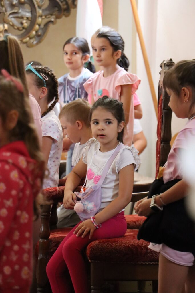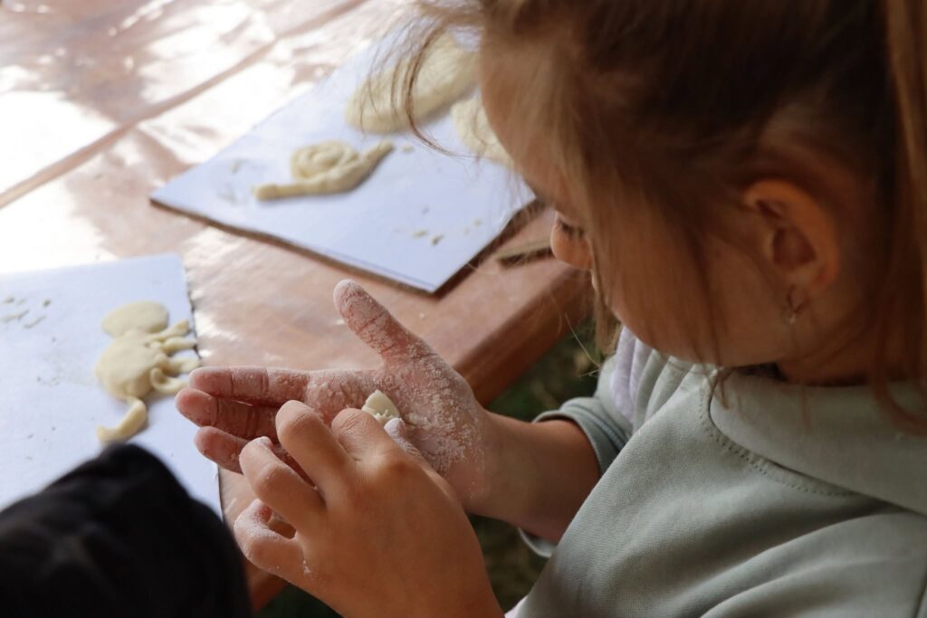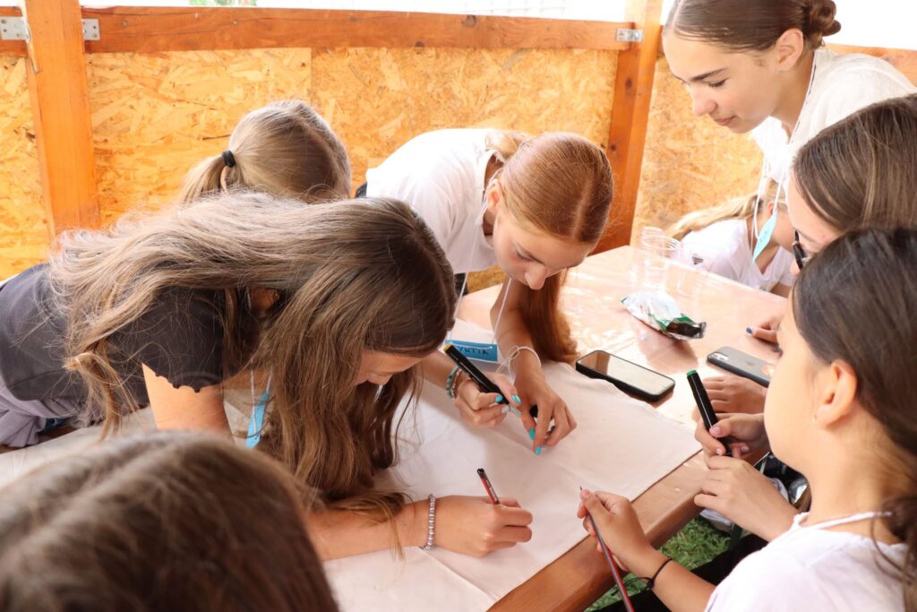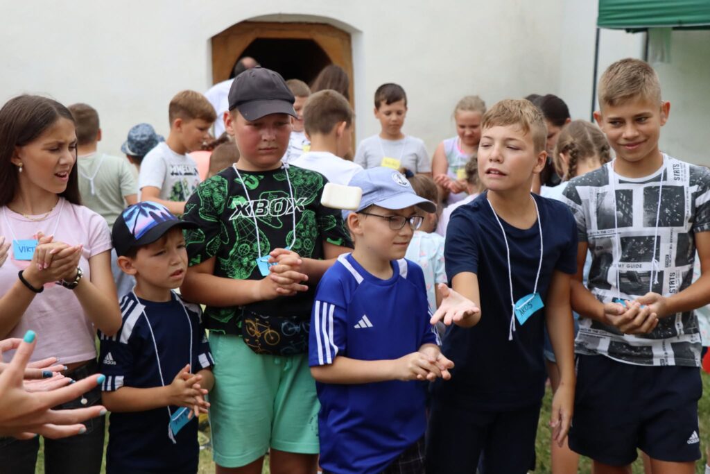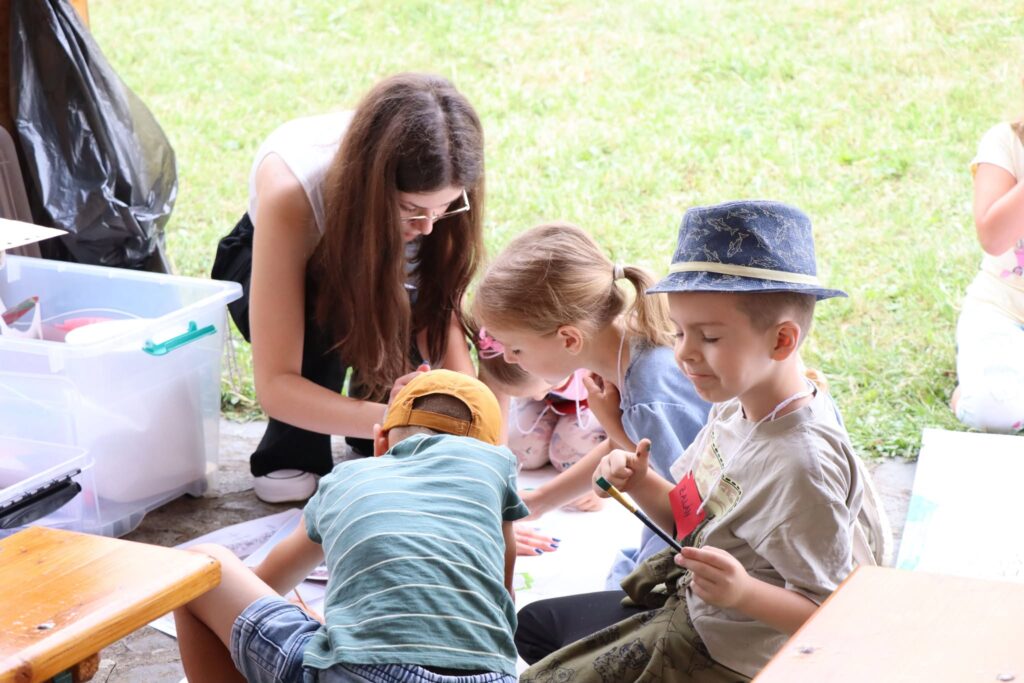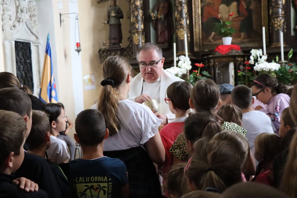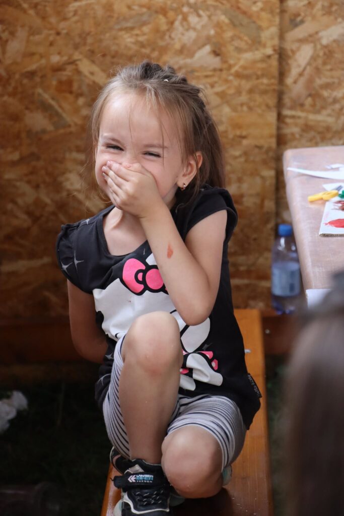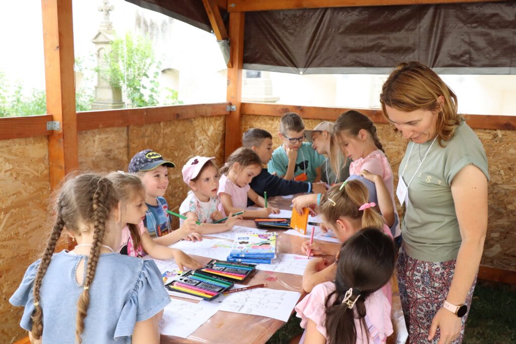Ezt követően a gyerekek a csoportvezetőket követve elfoglalták „városaikat”, melyek a templomkertben voltak kijelölve. A már megszokott módon zászlót készítettek, felépítették a várost, megírták annak tízparancsolatát, valamint városnévsort is készítettek napi teendőkkel. Ez a sok munka ki is töltötte az első napot. A többi napokat is szentmisével indítottuk, melyet Pál Ferenc helyi plébános celebrált, majd ebédig kiscsoportos tevékenységek voltak, ahol behatóbban is megismerhették saját zarándokhelyüket a táborozók. Ebéd előtt a már megszokott szappanos játék örvendeztette a gyerekeket. Ők is tudták, hogy ez összekapcsolt kellemes-hasznos dolog, ahol lehetett kicsit pancsolni is a vizet, és a végén mégiscsak tiszta kézzel ültek asztalhoz.