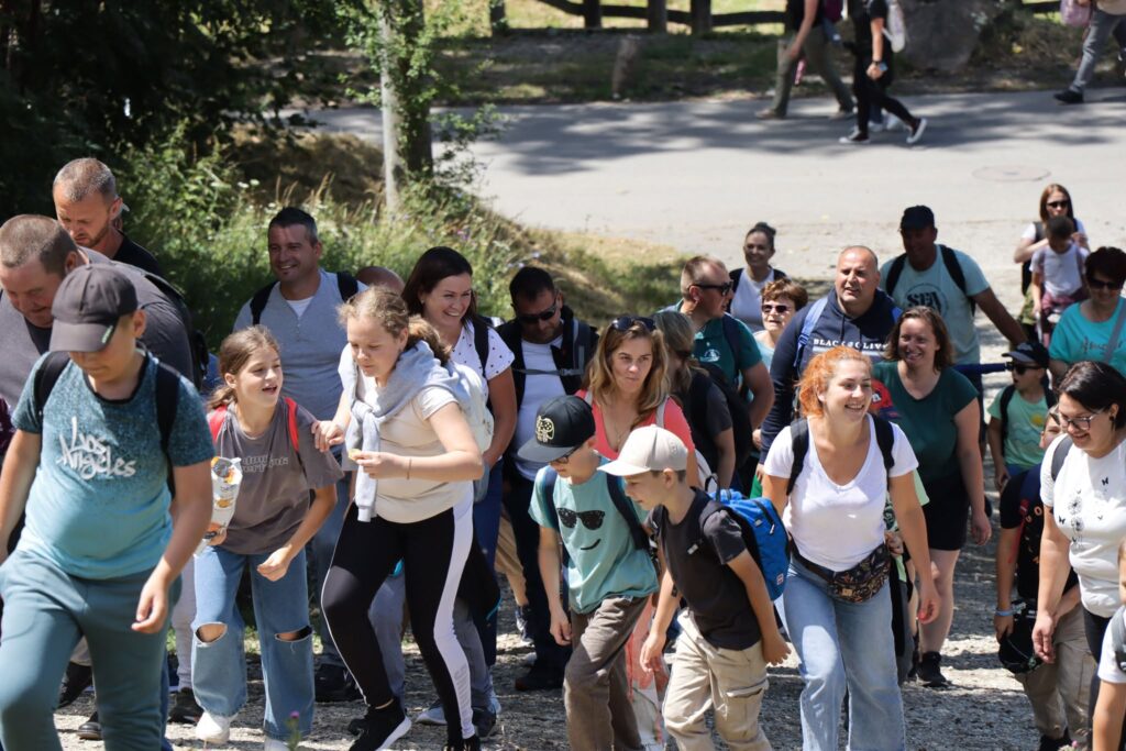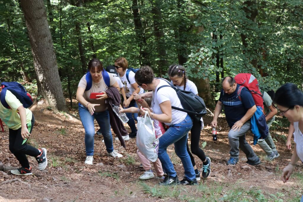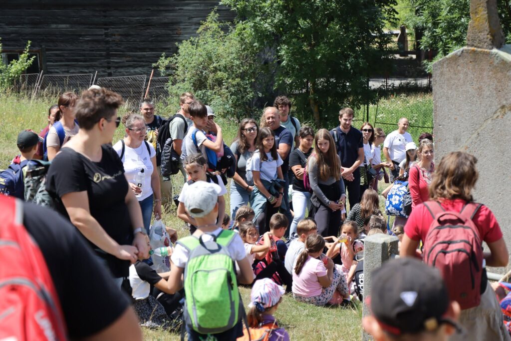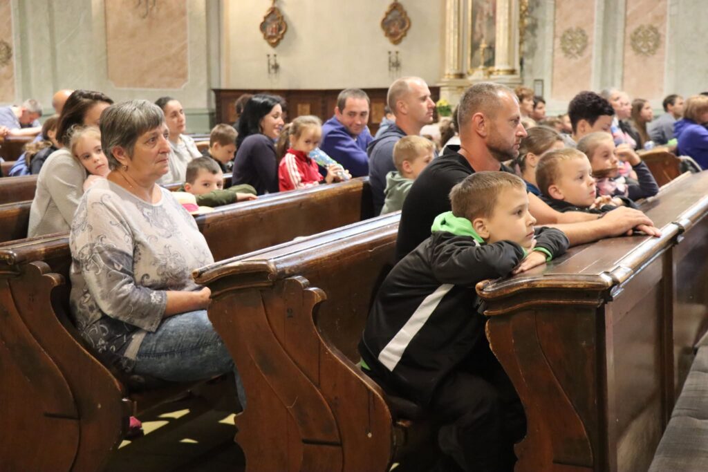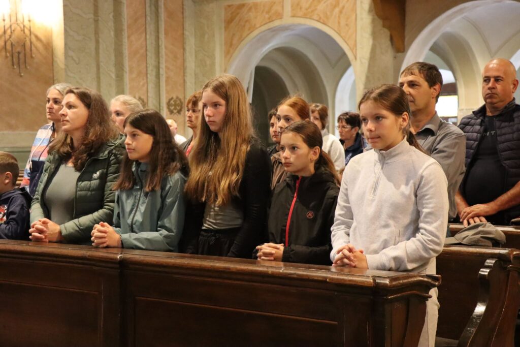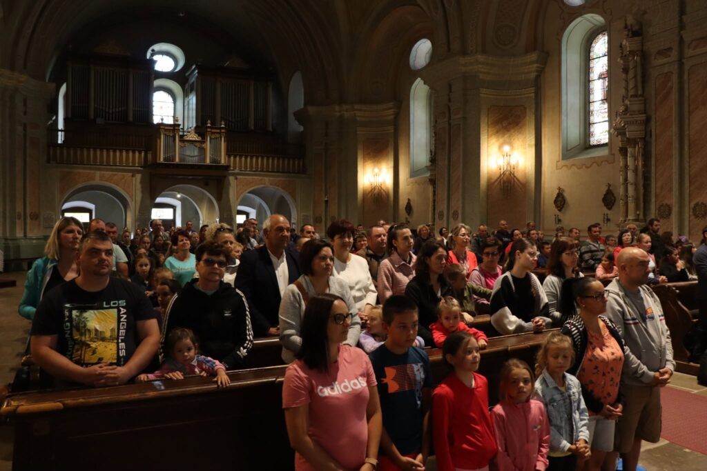 De nem merült ki ennyiben a zarándoklatunk. Elindult a több mint kétszázötven fős csapat a nyeregbe a kálvária útján, ahol keresztutat is végeztünk plébánosunk vezetésével. Isten kegyelméből jó időnk volt, így volt lehetőség a játékra is és a szülők, családok közti kapcsolatok építésére, mélyítésére. Nem maradhatott el a gyerekekkel a csoportkép a MISERICORDIA feliratnál, ahol mindenki kereste, hogy melyik betű a szimpatikusabb és természetesen gyakran feltevődött a nagy kérdés, hogy: -De ez mit jelent? Nyilván nem hagytunk válasz nélkül senkit.