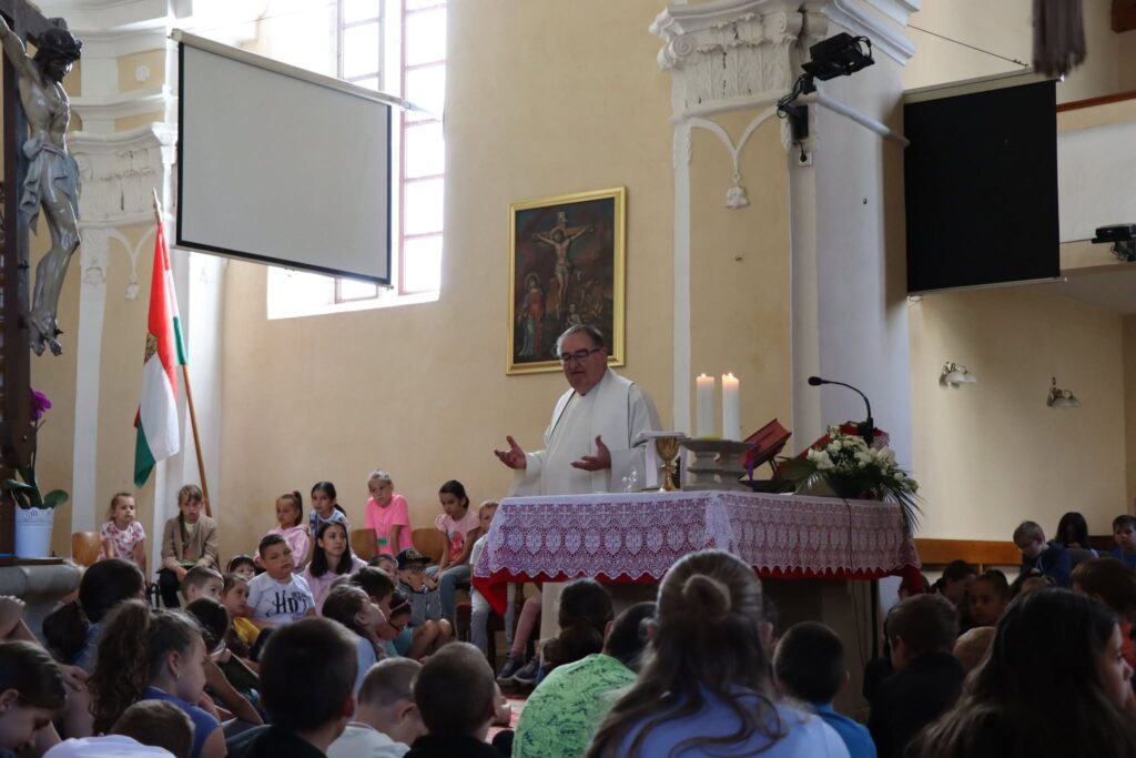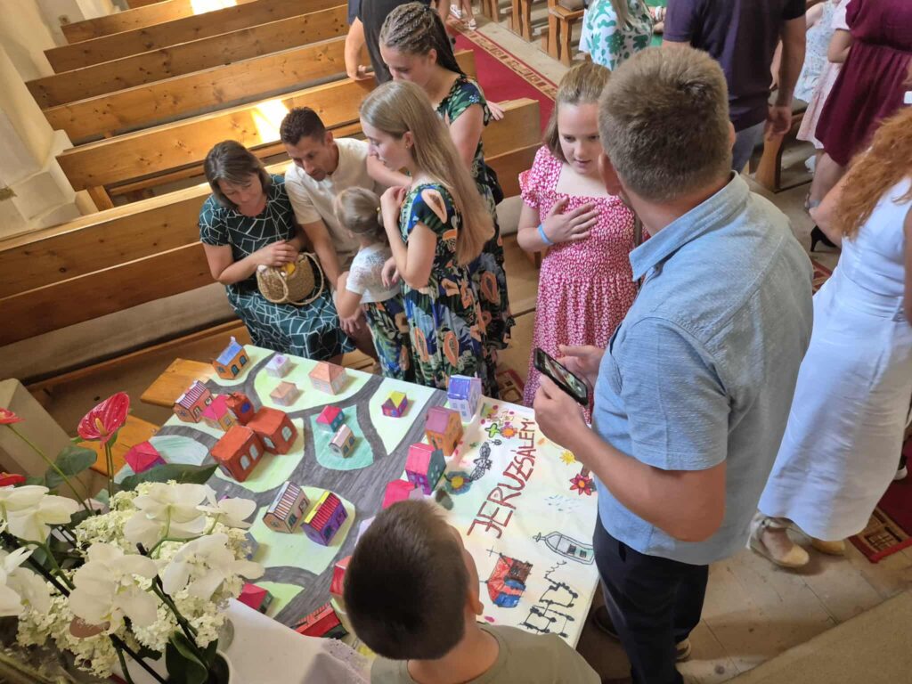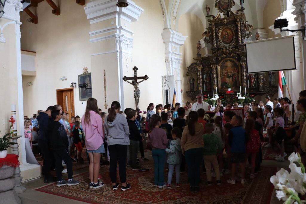Vasárnap hálaadó szentmisével zártuk táborunkat, melyet követően a szülők megtekinthették a kiállított alkotásokat, városokat, zászlókat. Majd egy rövid állófogadás keretében különböző élménybeszámolókat hallgathattunk mind gyerekek, mind pedig szülők részéről. Szinte már családos délutánná alakult a nap, melyet aztán a pacsi, az ölelés és elköszönés váltott fel.
