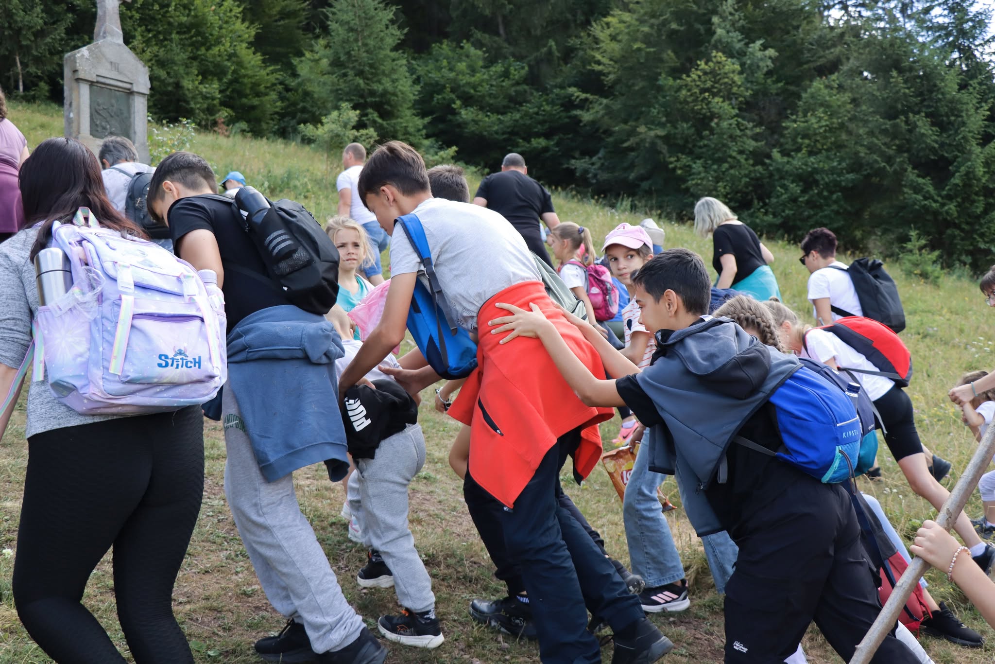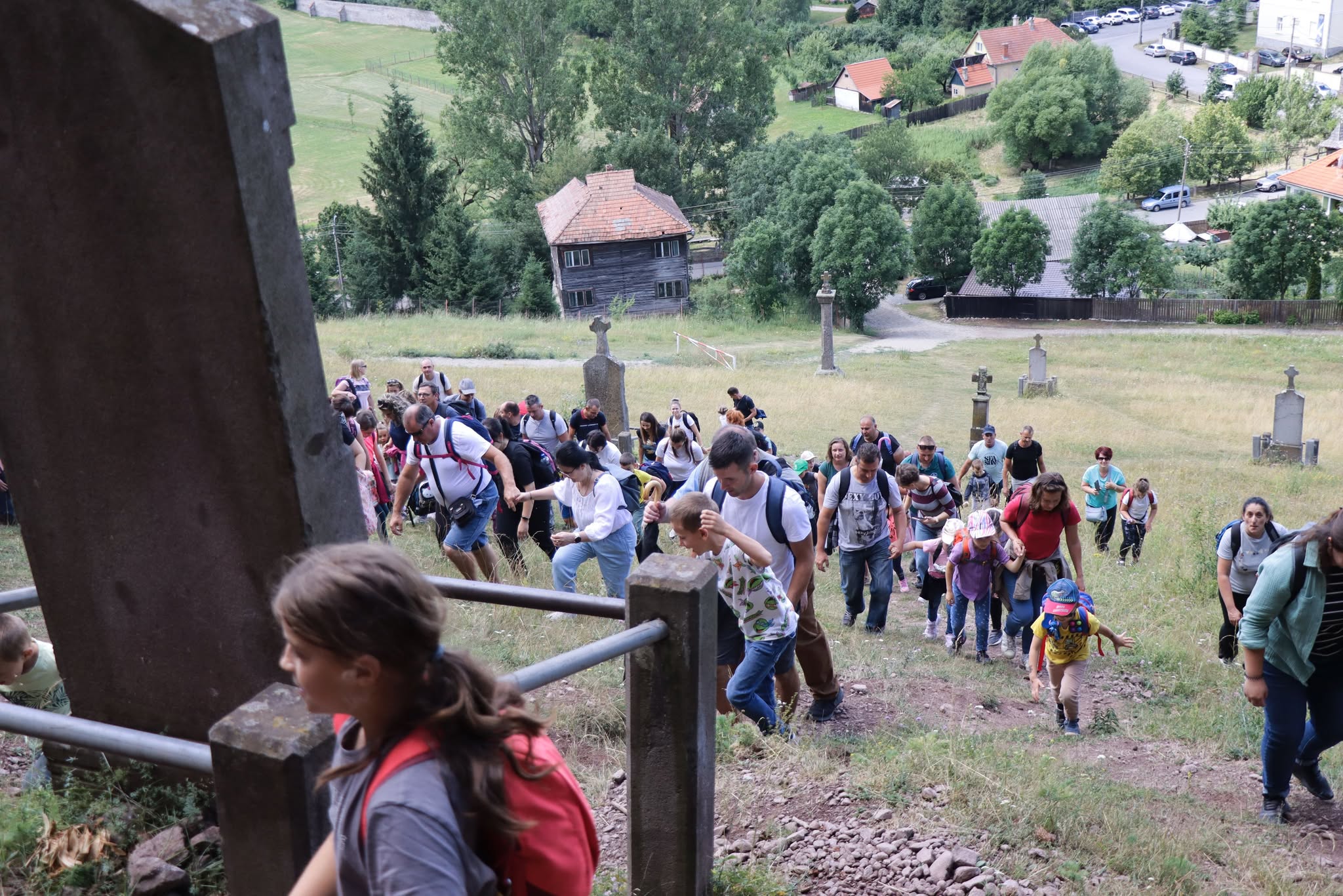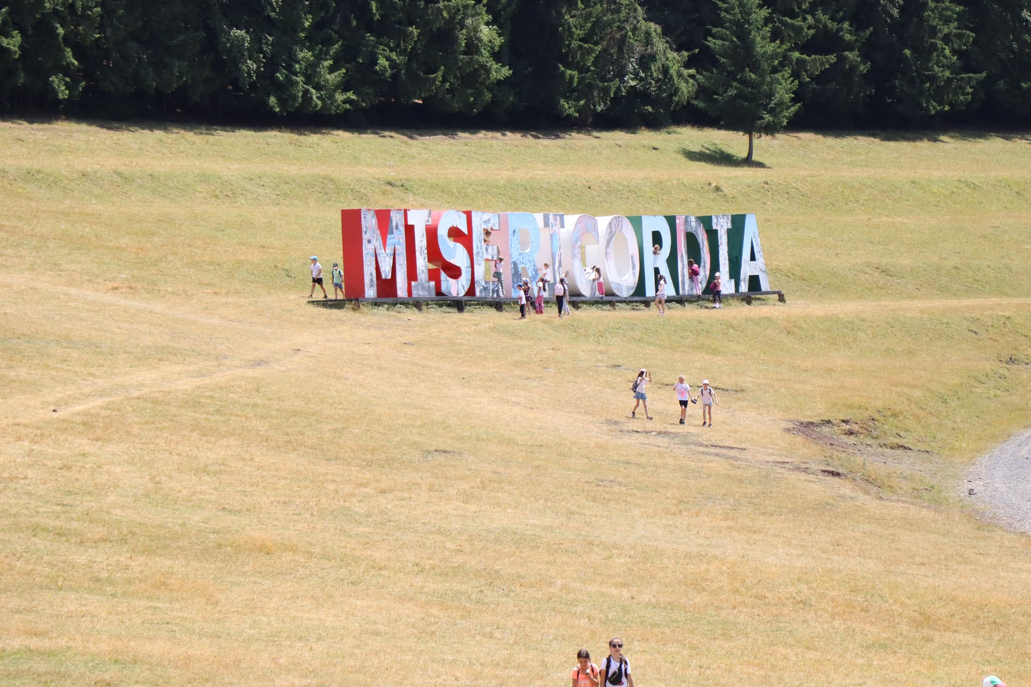 De nem merült ki ennyiben a zarándoklatunk. Elindult a több mint kétszázötven fős csapat a nyeregbe a kálvária útján, ahol keresztutat is végeztünk plébánosunk vezetésével. Isten kegyelméből jó időnk volt, így volt lehetőség a játékra is és a szülők, családok közti kapcsolatok építésére, mélyítésére. Nem maradhatott el a gyerekekkel a csoportkép a MISERICORDIA feliratnál, ahol mindenki kereste, hogy melyik betű a szimpatikusabb és természetesen gyakran feltevődött a nagy kérdés, hogy: -De ez mit jelent? Nyilván nem hagytunk válasz nélkül senkit.