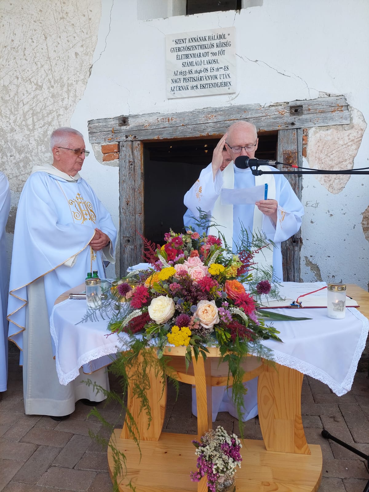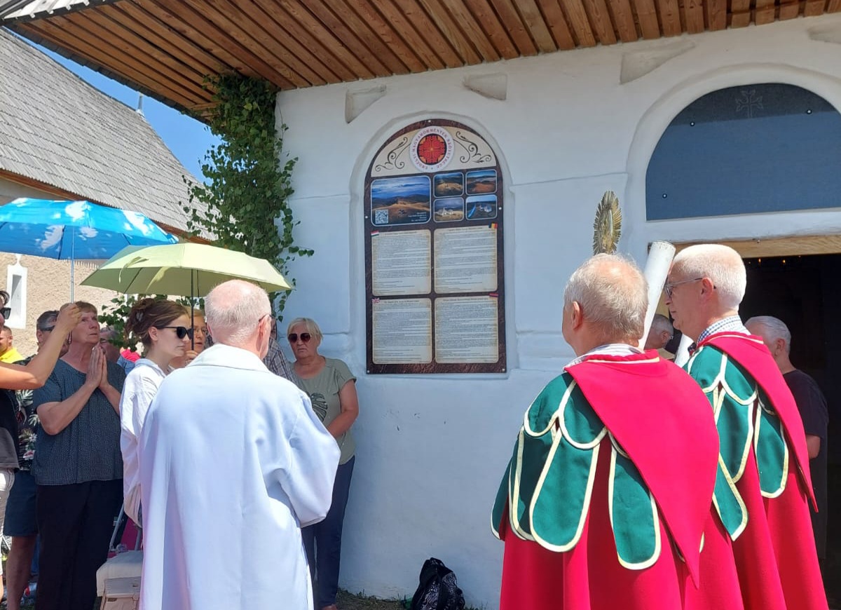 Az örmény kápolna falára elhelyezett táblát a július 26-án, a Szent Anna-napi búcsús szentmise keretében áldotta meg Lukács József gyergyószentmiklósi származású, jelenleg Kölnben szolgáló magyar plébános, az örmény katolikus plébánia kórusa, a Vörösköpönyegesek és számos hívő részvételével.
