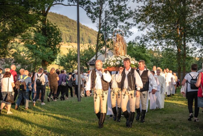 A szentmise után ugyancsak a csíkszentkirályi egyházközség híveinek vezetésével a dicsőséges olvasót imádkozták a zarándokok. A gyertyás körmenetben népviseletbe öltözött férfiak vitték a Szűzanya kegyszobrának másolatát.