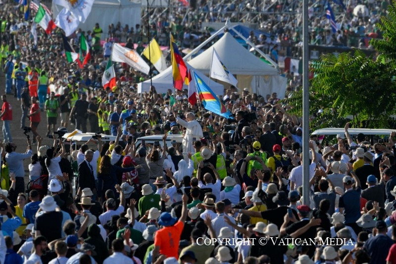Máriára, a reménység Szüzére bízlak benneteket! Az ő segítségével térjetek vissza a következő napok során országaitokba, a világ minden részére. Járjatok továbbra is örömmel az Üdvözítő nyomdokaiban; lelkesedésetekkel és hitetek tanúságtételével pedig fertőzzetek meg mindenkit, akivel csak találkoztok! Jó utat nektek!