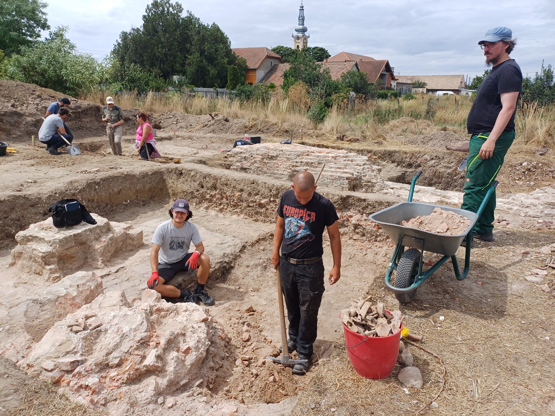 A román fél a temesvári Banatul Nemzeti Múzeum, a magyar fél pedig a Pázmány Péter Katolikus Egyetem Régészettudományi Intézete, több tucat szakemberünk és hallgatónk fordult már meg itt. A hallgatók közül van aki a mester, és van aki a doktori disszertációját írja az itt feltárt anyagból. Nagyon hangulatosak szoktak lenni az itt töltött hetek, ennyi hallgató között, és jönnek más kollégák is, például Buzás Gergely, a Magyar Nemzeti Múzeum visegrádi múzeumának igazgatója, régi jó barátunk, aki tanárom is volt. Ő készítette ezt a makettet is meg a 3D-s rekonstrukciókat. Jönnek továbbá más egyetemekről is barátok, ismerősök megtekinteni a lelőhelyet. Éppen most kezdődött az úgynevezett Szászbogácsi Tábor, ahol a Műegyetem, a Pázmány Péter Katolikus Egyetem régész és művészettörténész képzése, a Képzőművészeti Egyetem és az ELTE művészettörténeti szaka küld tanárokat és diákokat, ők szombaton jártak itt és tekintették meg a helyszínt. Ami még érdekesség és nemzetközivé teszi a projektet, hogy vannak külföldi hallgatóink is. Volt, hogy spanyol hallgatókat hoztunk ide, akik cserediák programmal érkeztek hozzánk az intézetbe. Az utóbbi években a feltárás állandó tagjai az intézetünk szíriai hallgatói. Érdekes, hogy a magyar keresztes király temetkezési helyét szíriai hallgatók ássák, muszlimok és keresztények együtt.