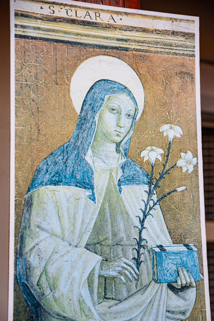 Szent Klára élete példát ad: imádsággal Krisztust hordozta, életével „megszülte” a világ számára, így felragyogtatta Isten arcát a mindennapokban.
