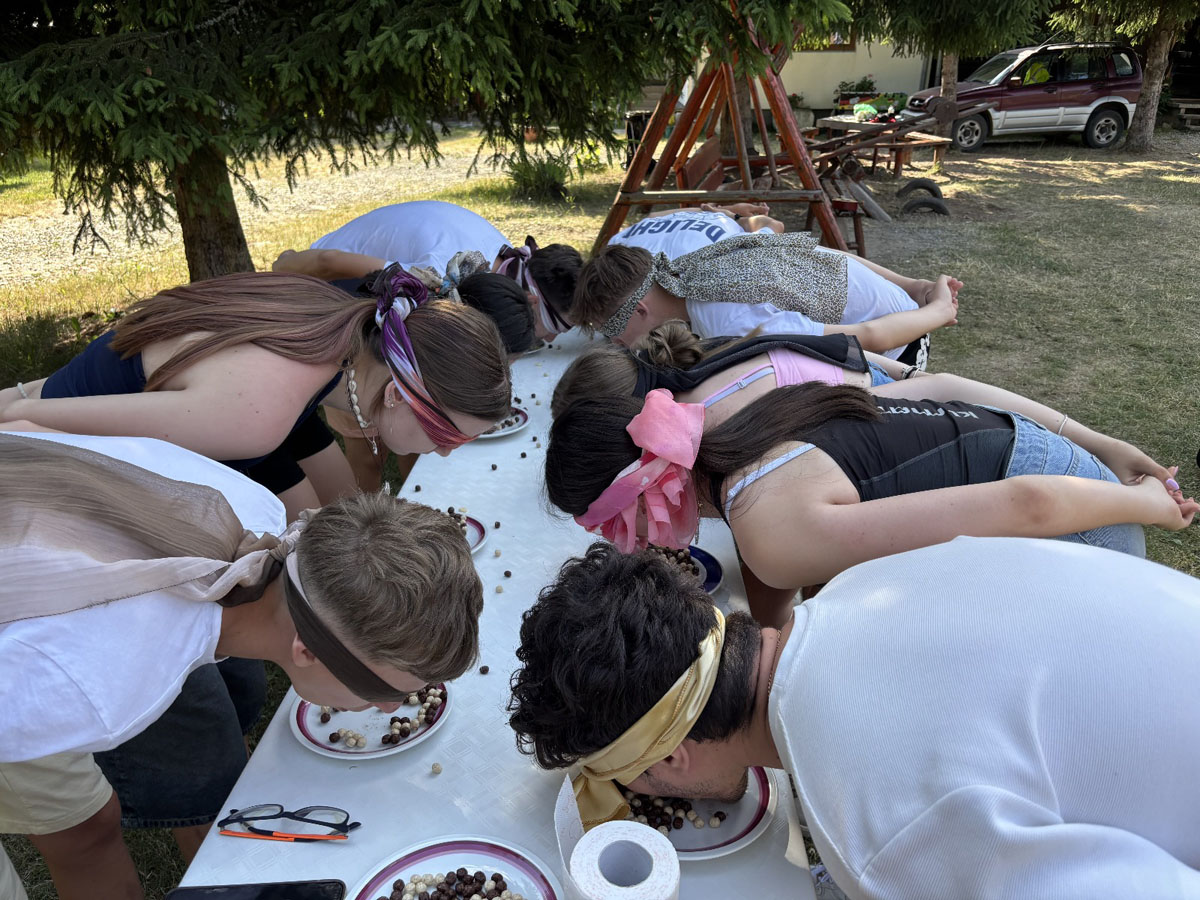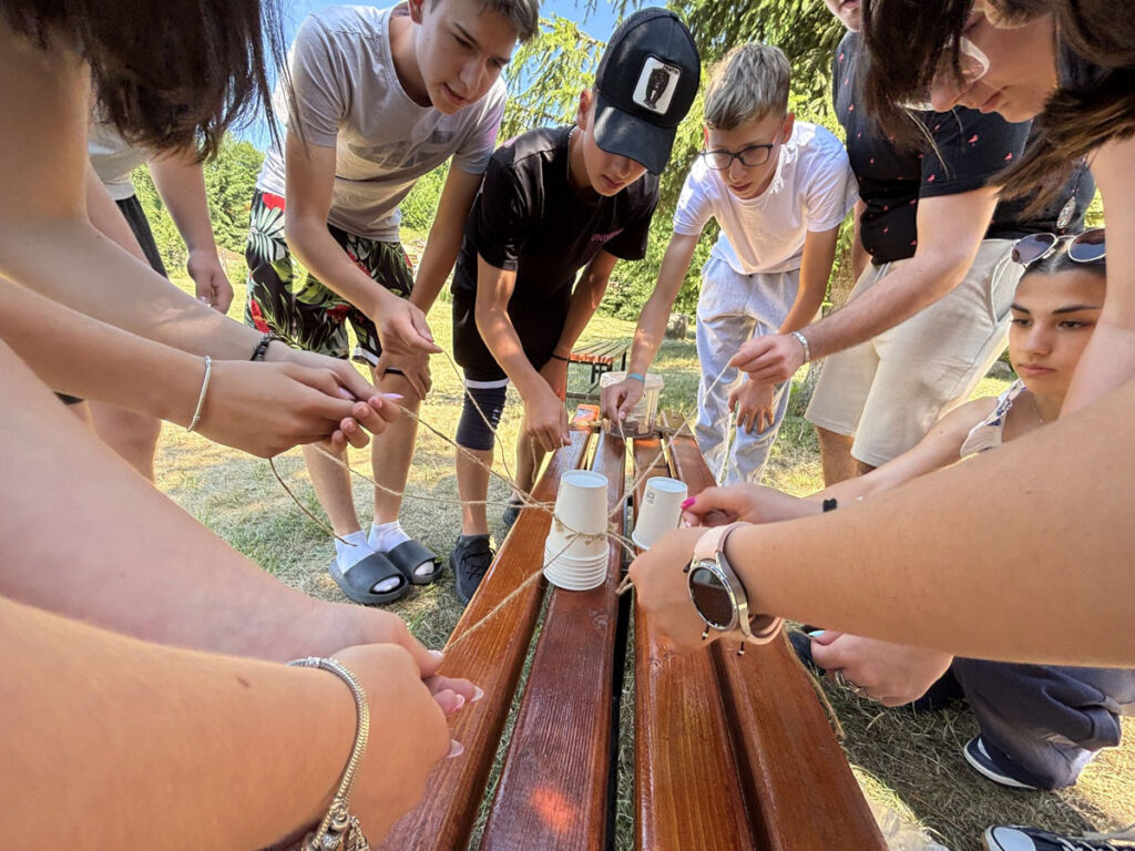 A nagy csapat kis, 10–11 fős csoportokban dolgozott, versenyzett és beszélgetett. Az együtt végzett feladatok – az étkezések előkészítése, felszolgálása, elpakolása, a csoportversenyek és a beszélgetések – mind hozzájárultak ahhoz, hogy a résztvevők jobban megismerjék egymást, és valódi közösséggé formálódjanak.