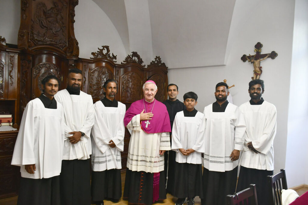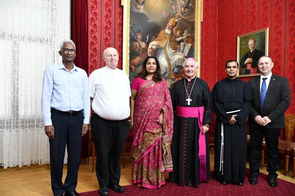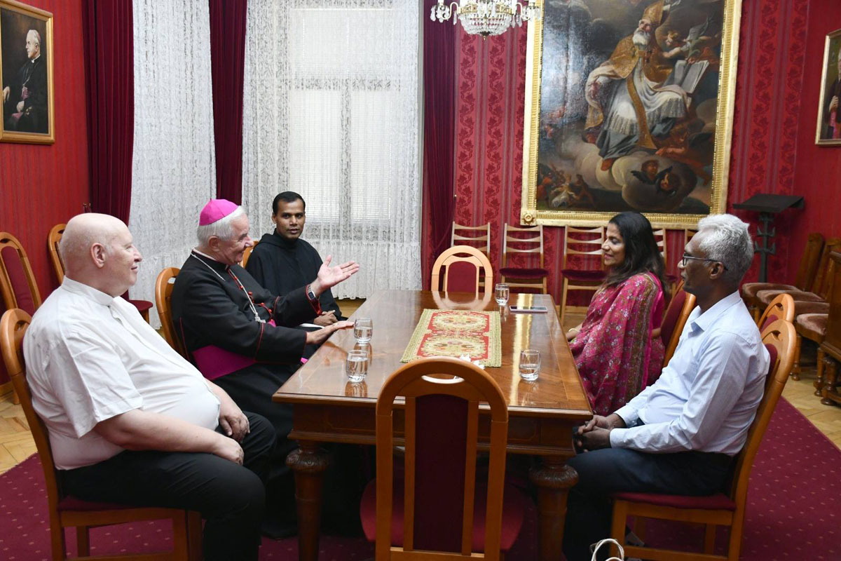 A szentmisét megelőzően a nagykövet asszony, Rasiah Ratheesparan konzulátusi attasé kíséretében bemutatkozó látogatást tett a temesvári püspökségen, ahol találkozott Pál József Csaba főpásztorral. A temesvári püspökség képviseletében ezen a találkozón jelen volt Johann Dirschl általános helynök és Claudiu Călin egyházmegyei levéltáros. A megbeszélés során a magas rangú vendég elmondta, hogy jelenleg ő és Rasiah Ratheesparan attasé látják el a konzuli feladatokat is a Romániában élő Srí Lanka-i közösség szolgálatában. Ez a munka nem könnyű, mivel a közösség tagjai az ország több városában élnek és dolgoznak, mint például Bukarestben, Temesváron, Aradon, Jászvásáron, Nagyszebenben és Brassóban.