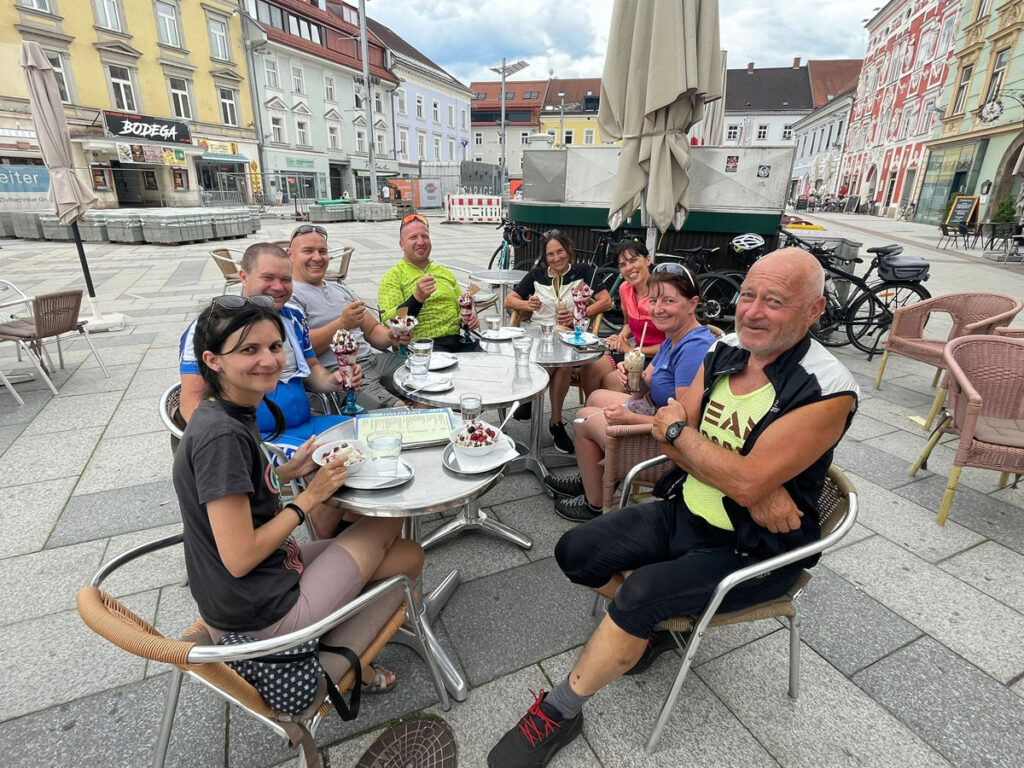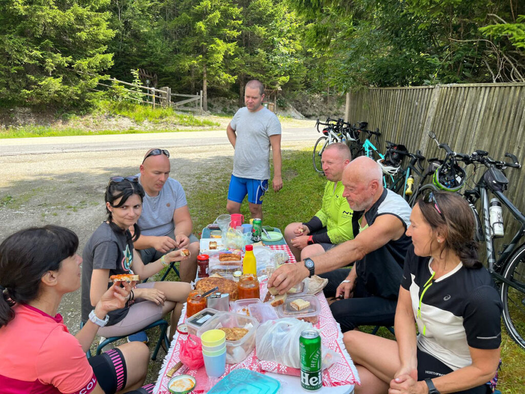 Mert mit nyújtott nekünk a reggel? Egy ének szövege jut eszembe válaszként: „Van egy jó hely, odamegyek. Lerakom ott a terheket. Ott fenn a hegyen van az a hely, ahol a szív békére lel…”Az a csend, a nyugodtság, a megérkezés öröme, a szentmise a kegytemplomban, a fénykép készítésére felkért „osztrák”, aki magyarul szólt vissza, a magyar pincér mosolya, mind-mind hálával és csodálkozással töltött el bennünket. És ezzel lelkülettel felvértezve indultunk el kerékpáros zarándoklatunkra, szívünkben talán a kis cserkészek jelmondatával: „Visszamosolyogni mindenre, visszamosolyogni az Istenre” (Mécs László)