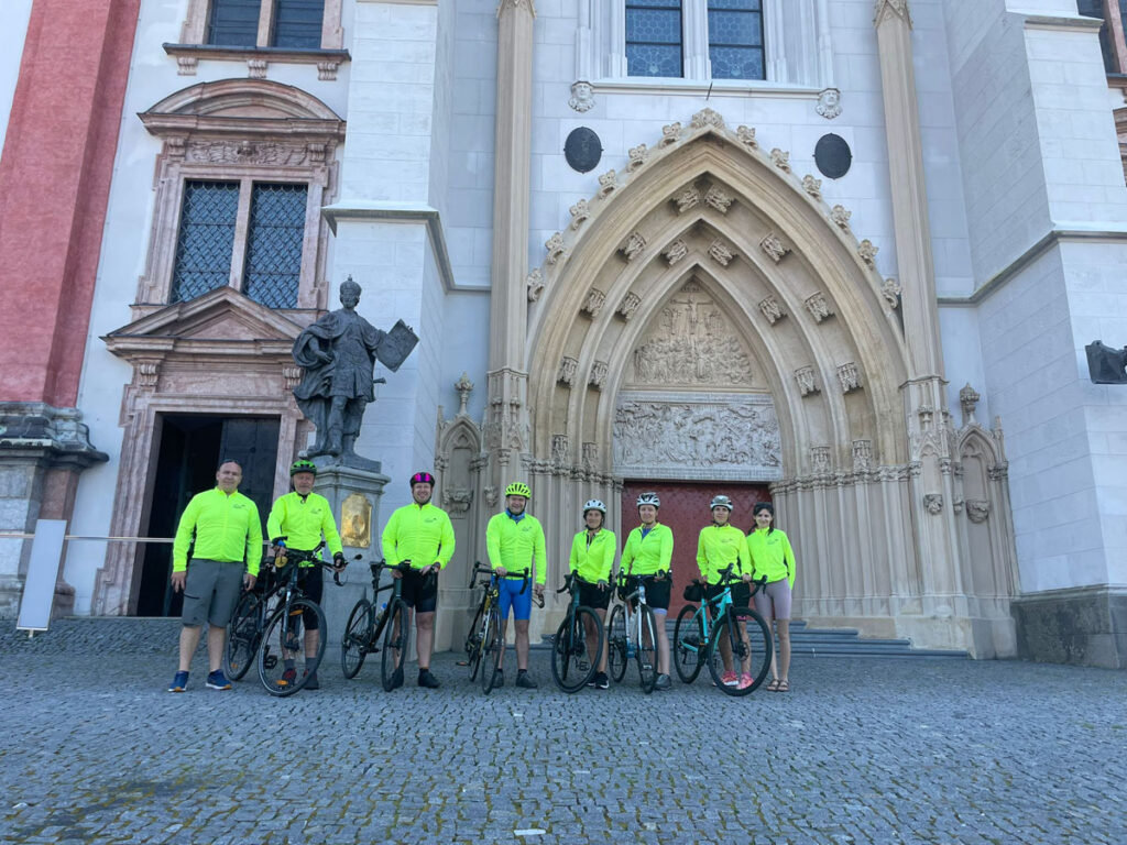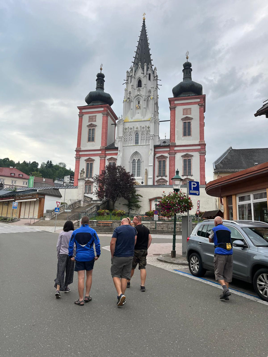 Ábrahám felszólítást kapott az Úrtól: Menj ki földedről… és ő ment. A néhány éve megalakult kerékpáros kis társaságunk – Mária Teker(g)ői –, bár nem biztos, hogy ilyen felszólítás hatására, mégis reményeink szerint a Szentlélek indíttatására, évről évre elindul egy lelki feltöltődésre. A pátriárkával szemben némi előnyünk is van, hiszen mi tudjuk a célt, ahova el szeretnénk jutni. Az idei zarándoklatunk is, ahogy minden esetben, csíksomlyói áldással indult útnak (ekkor még négy keréken) és a reggeli dicséretünk már Mariazellben hangzott el. A magas hegyek között megbújó kis település Közép-Európa legjelentősebb Mária-kegyhelye. Története (legendája) a 12. századra nyúlik vissza, amikor a környékre érkezett egy Magnus nevű bencés szerzetes St. Lambrechtből az ottani apát megbízására, hogy az itt élők lelkipásztora legyen. A szerzetes magával hozta fából faragott kedves Mária-szobrát is. Útját azonban egy helyen hatalmas szikla zárta el, amelytől nem tudott tovább menni. A szerzetes a Szűzanyához fordult segítségért, imája meghallgatásra talált, a szikla kettéhasadt, így Magnus folytathatta az útját. Megérkezve a szobrot egy farönkre tette és kis fakápolnát épített köré (Maria in der Zelle), amely hamarosan a vidék hitéletének központjává vált. A település hírét igazából Nagy Lajos királyunk alapozta meg, amikor a törökök felett aratott győzelme után hálából templomot épített a kápolna helyébe. Ebből ma is áll a középhajó és a középső, gótikus torony. Nagy Lajos óta a magyarok számára igen kedves Mária-kegyhely Mariazell, és most már számunkra is.