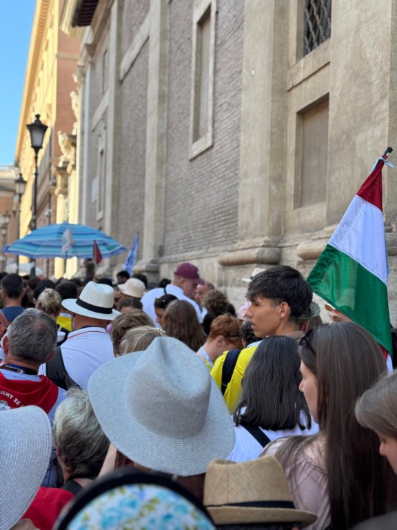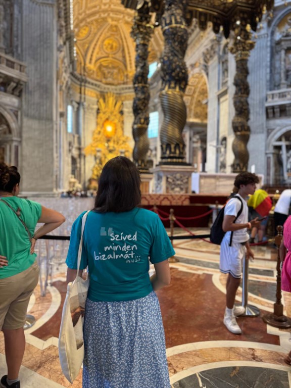 Elsősorban úgy éltem meg ezt az utat, mint egyfajta megkoronázását az egyetemi éveimnek. Hálaként ajánlottam fel Istennek mindazért, hogy a reménytelennek tűnő helyzetekben mindig reményt adott embereken vagy lehetőségeken keresztül. Sokszor adott erőt, amikor úgy éreztem, képtelen vagyok tovább menni. Másodsorban a családomért ajánlottam fel a zarándoklatot: a szüleimért, a testvéremért és a családunk egységéért. Azért, hogy még mélyebben megtapasztalhassuk Isten jelenlétét egymásban. A zarándoklat során voltak pillanatok, amikor inkább éreztem magam turistának, mint zarándoknak a hatalmas tömeg és az elcsendesedés nehézségei miatt. Mégis, amikor sikerült igazán rá figyelni, mély és felemelő élményekben volt részem. Ilyen volt például a hosszú várakozás a Szent Péter-bazilika bejárata előtt, amikor együtt imádkoztuk a rózsafüzért. Közben más kultúrák dicsőítő énekei is felhangzottak körülöttünk. Egy másik emlékezetes pillanat a Taizé-imaalkalom volt, amit a Santa Maria in Aracoeli-bazilikában tartottak. Ott valóban lehetőség nyílt az elcsendesedésre és az Istennel való mélyebb találkozásra. Más nemzetek fiataljaival együtt dicsőítettük őt. Különösen megható volt a zarándoklatunk Tor Vergatában, ahol végig kísért a gondolat: „Uram, ezek a fiatalok mind érted vannak itt.” Ez mély hálával töltött el. Végül kiemelem a pápa által vezetett virrasztást és szentmisét. Ezek az alkalmak különösen mélyen érintettek, leginkább azért, mert ennyi fiatal együtt, fáradtan, a nehézségek ellenére is mosollyal az arcán, csillogó szemekkel imádkozott. Mert tudtuk: ő ott van. (Boér Szilvia, Csíkkarcfalva)