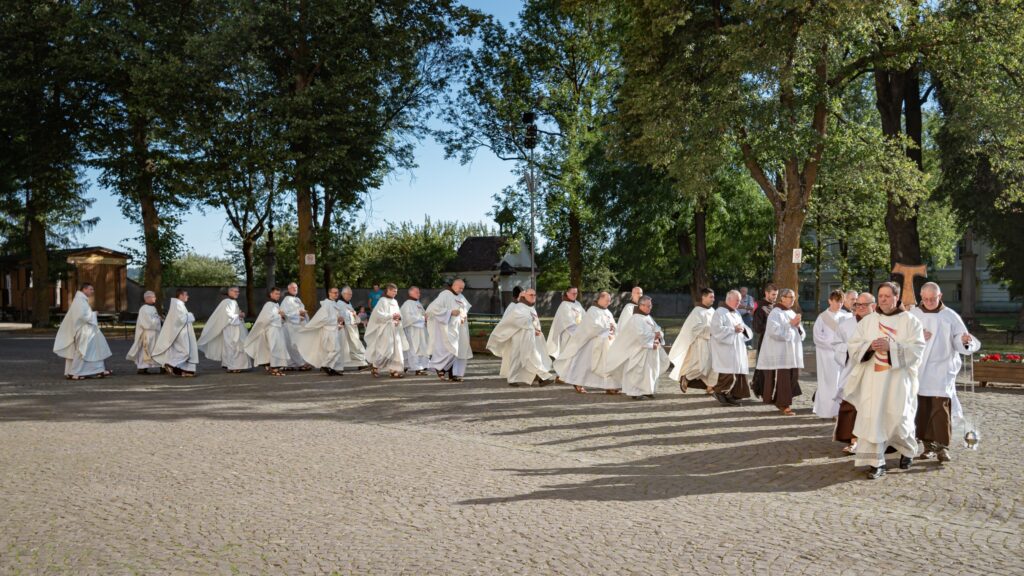 A találkozó kiemelkedő eseménye volt szerdán, az államalapító Szent István király ünnepén bemutatott esti szentmise, amelyen Tölgyesi Kristóf, rendi nevén Teofil megújította szerzetesi fogadalmát. Az ünnepi szentmisét Urbán Erik tartományfőnök mutatta be. Prédikációjában Szent István örökségéről beszélt, illetve arról, hogy miként lehetünk a „remény zarándokai”. Úgy fogalmazott: István ugyanazt az utat akarta bejárni, mint amit a második isteni személy járt be, amikor az Atya öléből a Szűzanya méhébe leereszkedve emberi testet öltött. Jézus Krisztus a Szűzanyán keresztül jött közénk emberként, István pedig a Szűzanyán keresztül ajánlja föl koronáját, népét, nemzetét, országát. A tartományfőnök kiemelte, hogy Szent István nemcsak államot alapított, hanem a keresztény hitet és a nemzeti összetartozást is hagyta örökül.