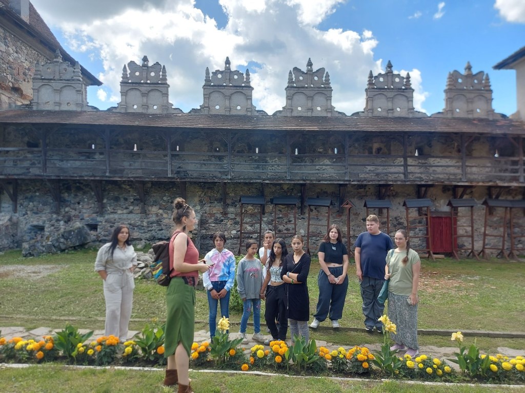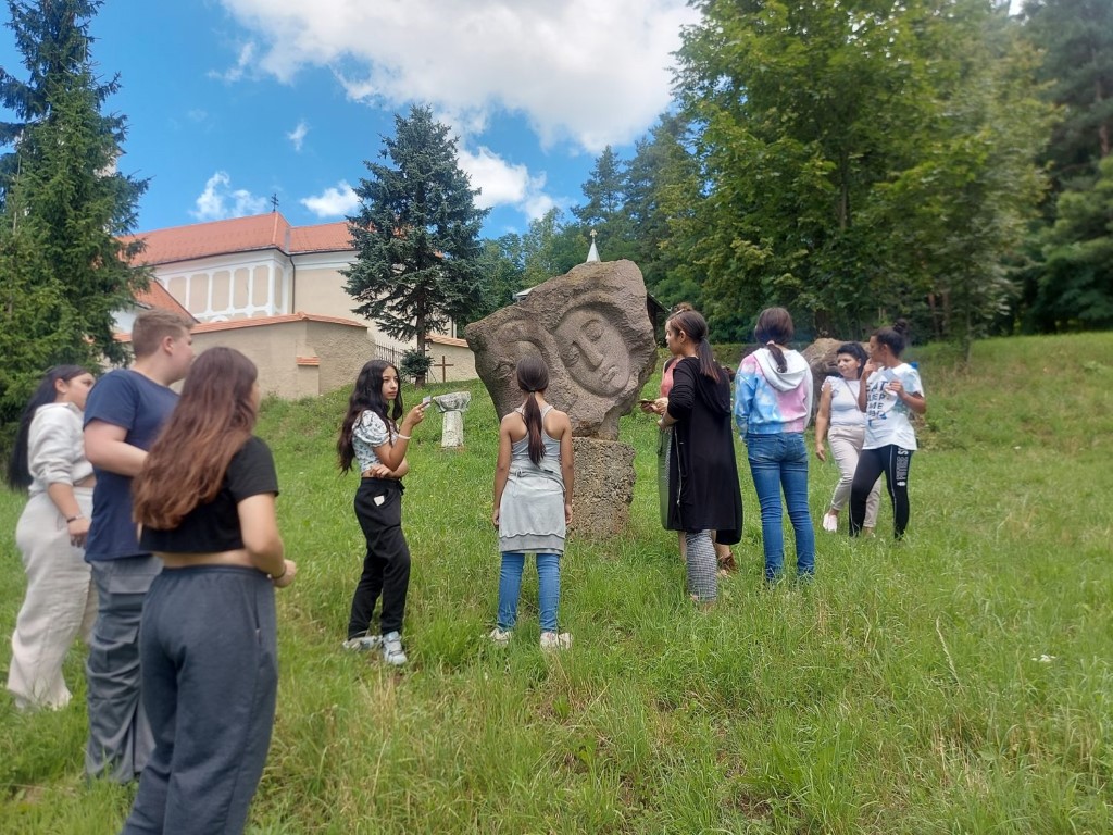 Elsőként a Lázár-kastély impozáns falai között barangoltunk, ahol Emese színes történetei életre keltették a lovagtermet, a kápolnát, a vadásztermet és a kastély zegzugos sarkait. Ezután a szoborparkban játékos feladat várta a fiatalokat: mindenkinek meg kellett találnia a „saját” alkotását, majd együtt beszélgettünk arról, mit üzenhet egy-egy mű.