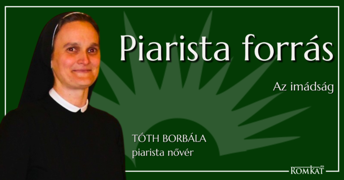 Amikor tudjuk, hogy Isten valóságosan jelen van az életünkben, akkor vágyunk rá, hogy beszélgessünk vele, hallgassuk szavát, amit bennünk, nekünk mond. A Piarista Nővérek Konstitúciója arra biztat, hogy gyakran elmélkedjünk a mi Urunk kínszenvedésén. Nem azért, mintha csak ennyi lett volna az életében, de ez volt a csúcs, amire felfutott a megváltásunk. Ugyanakkor életünk kínzó nehézségei válhatnak a legerősebb kapcsolódási pontjainkká Istennel, önmagunkkal és másokkal is. A kockázatok és mellékhatások tekintetében jól meg kell gondolnunk a Konstitúció alábbi kockázatelemzését: „aki imában egyesül Istennel, és hozzá emeli érzelmeit, már nem tartozik önmagához, hanem az Úr tulajdonává válik; átalakul benne”.