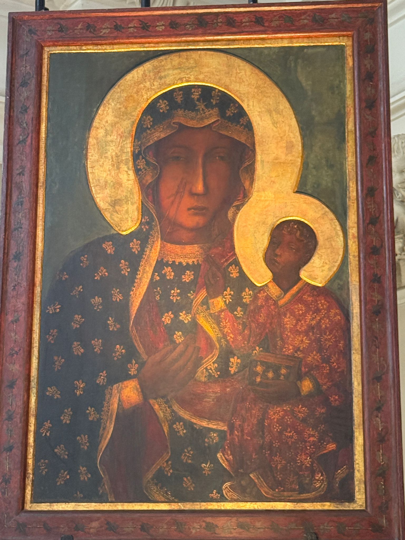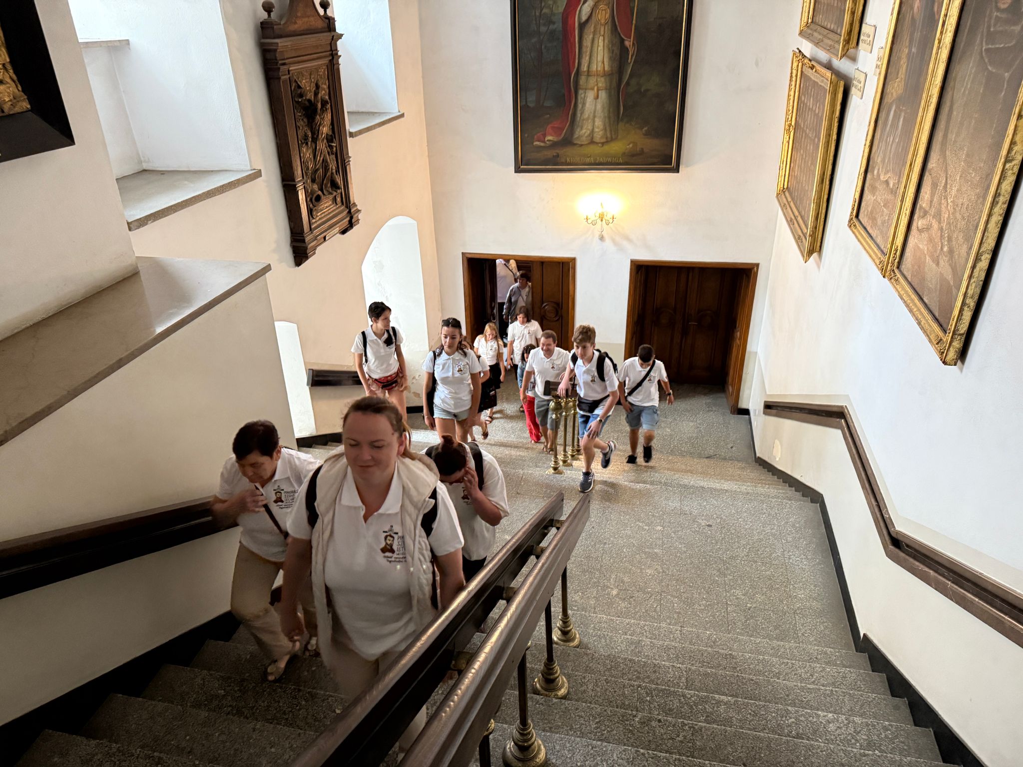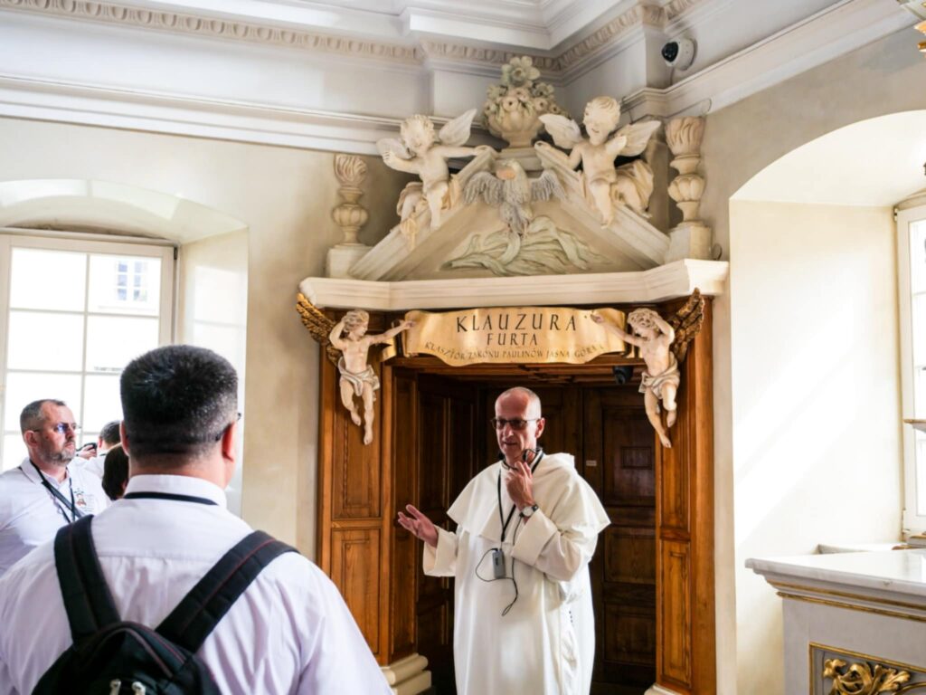 Az első állomáshely Częstochowa volt, amely nemcsak a Fekete Madonna ikonnak ad otthont, hanem egyben a pálos rend központja is. Zarándoklatunkhoz csatlakozott a verseny egyik zsűritagja, Bátor Botond pálos szerzetes is, akinek közbenjárására betekintést kaptunk a pálosok mindennapjaiba, láthattuk az ott található könyvtárat, ereklyéket, múzeumot, illetve a kolostor belső folyosóin Martinuzzi György freskóit is felleltük, aki néhány forrás szerint maga is tartózkodott Częstochowában egy ideig mint akkori házfőnök.