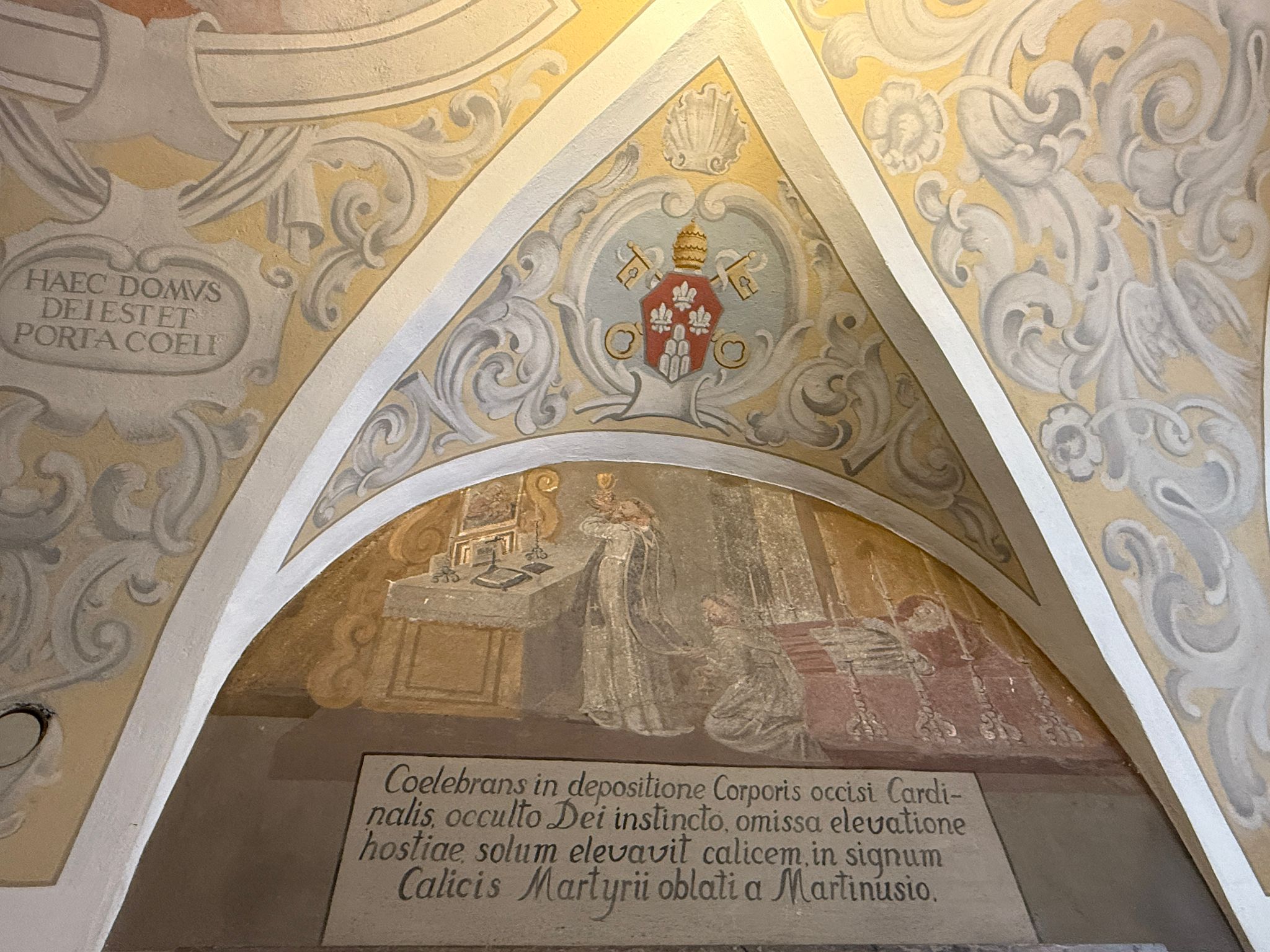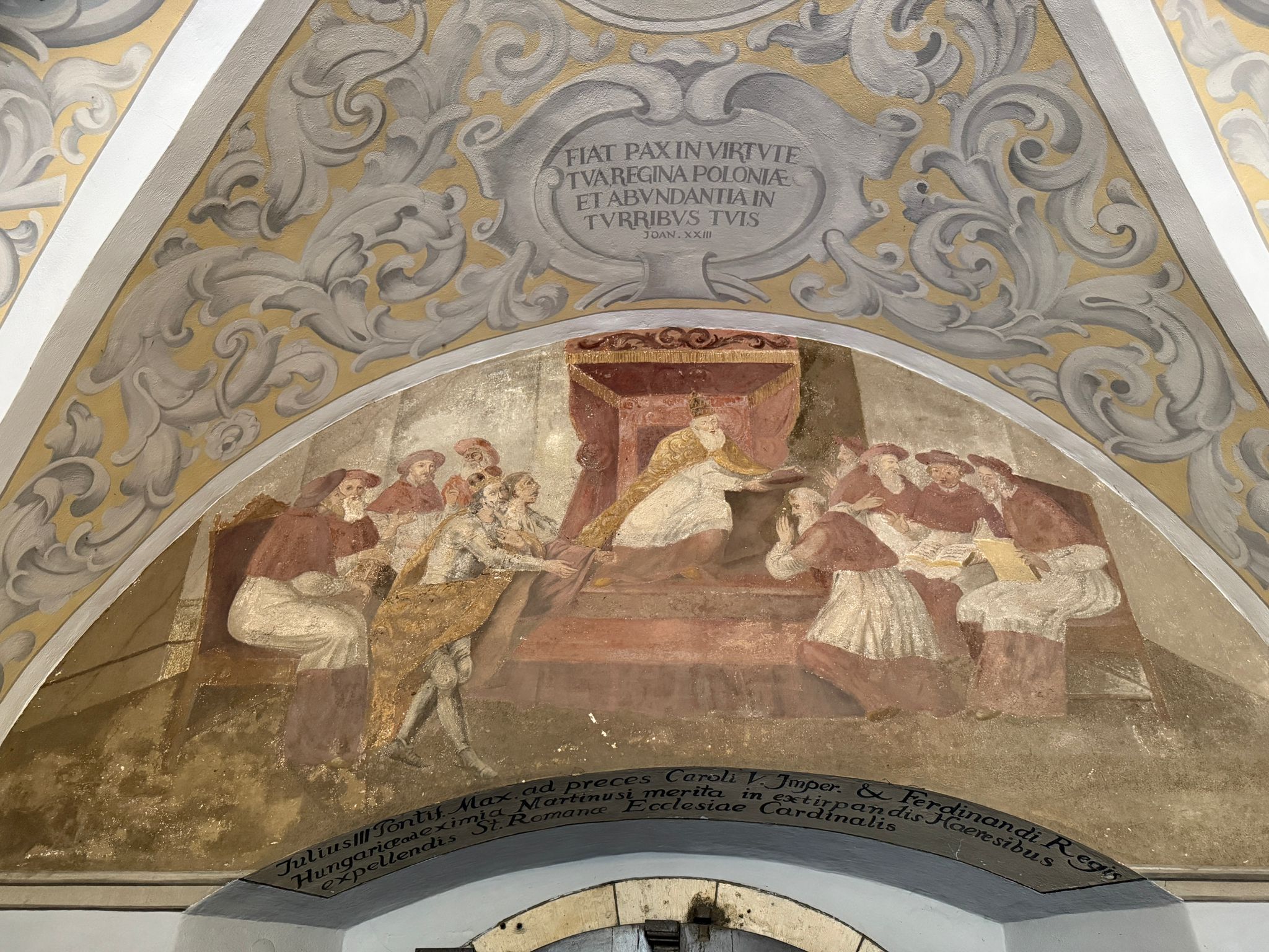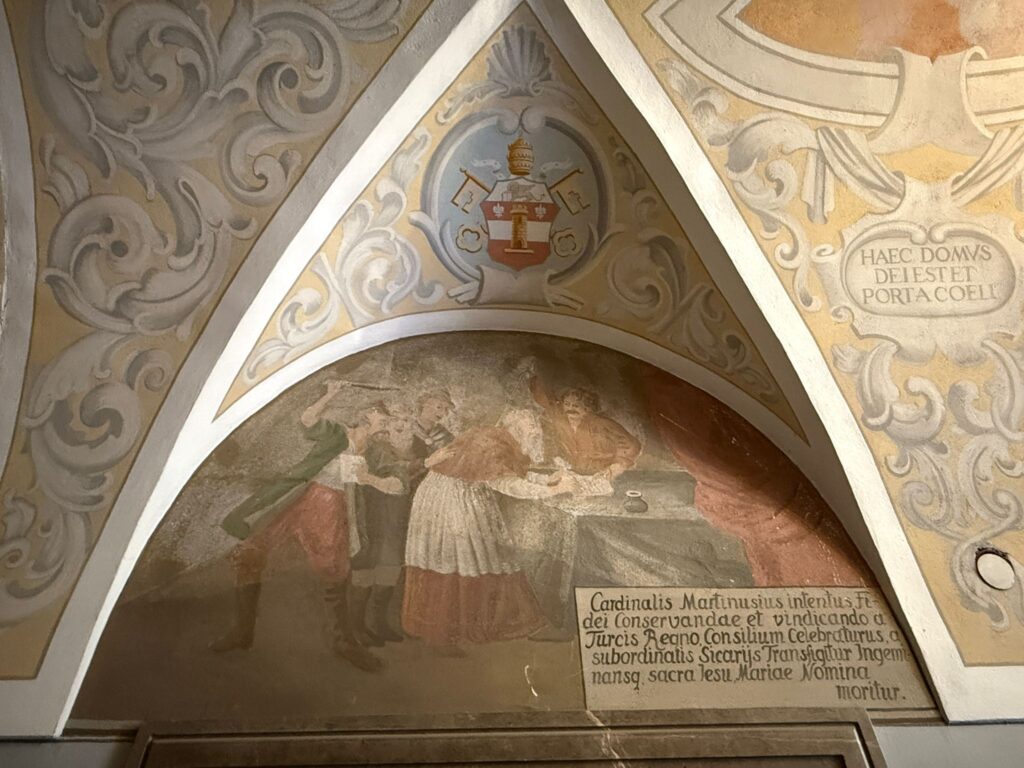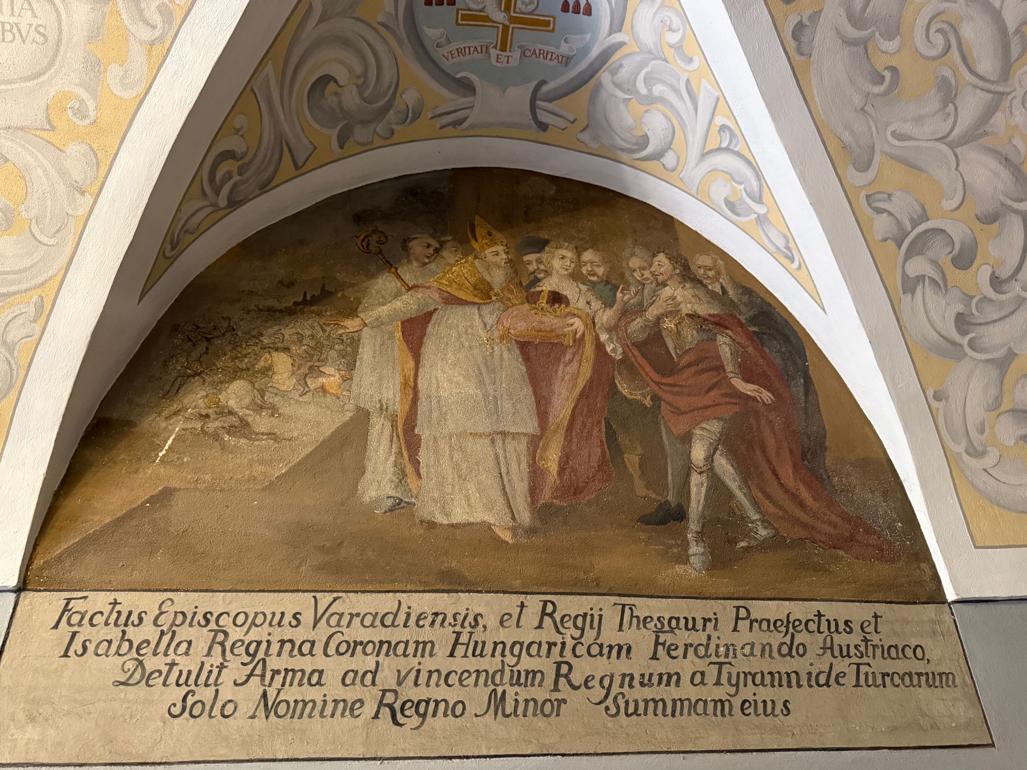 A püspökség szomszédságában található Szent Anna-székesegyházat is megtekintettük, amelynek falán szintén fellelhető a Martinuzzi Györgyöt ábrázoló freskó. Az interaktív bemutatást szentmisével zártuk, majd ebédeltünk és folytattuk utunkat haza.