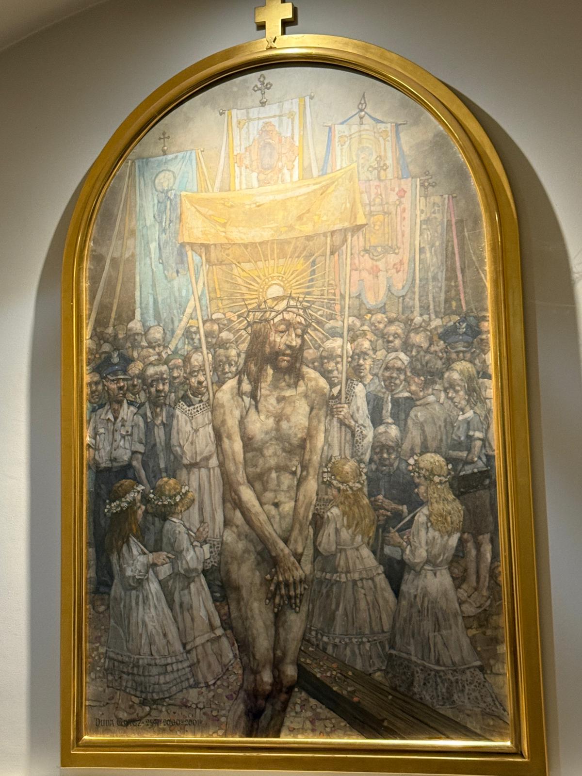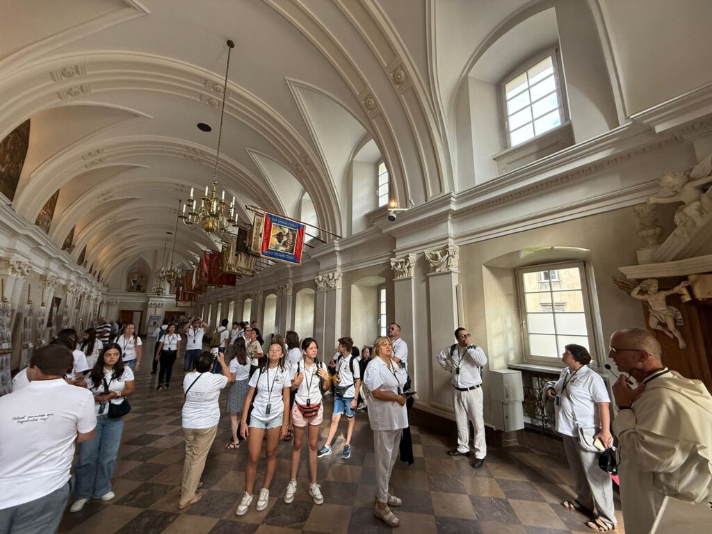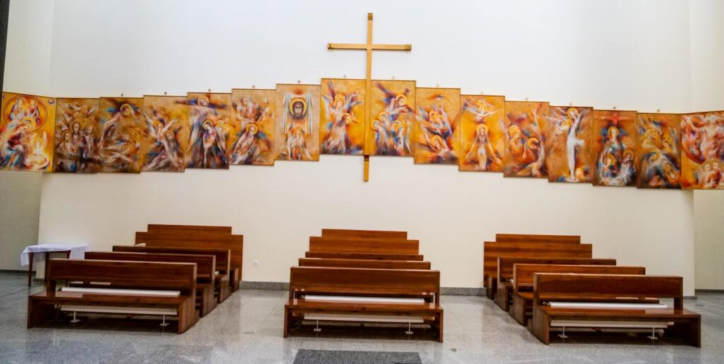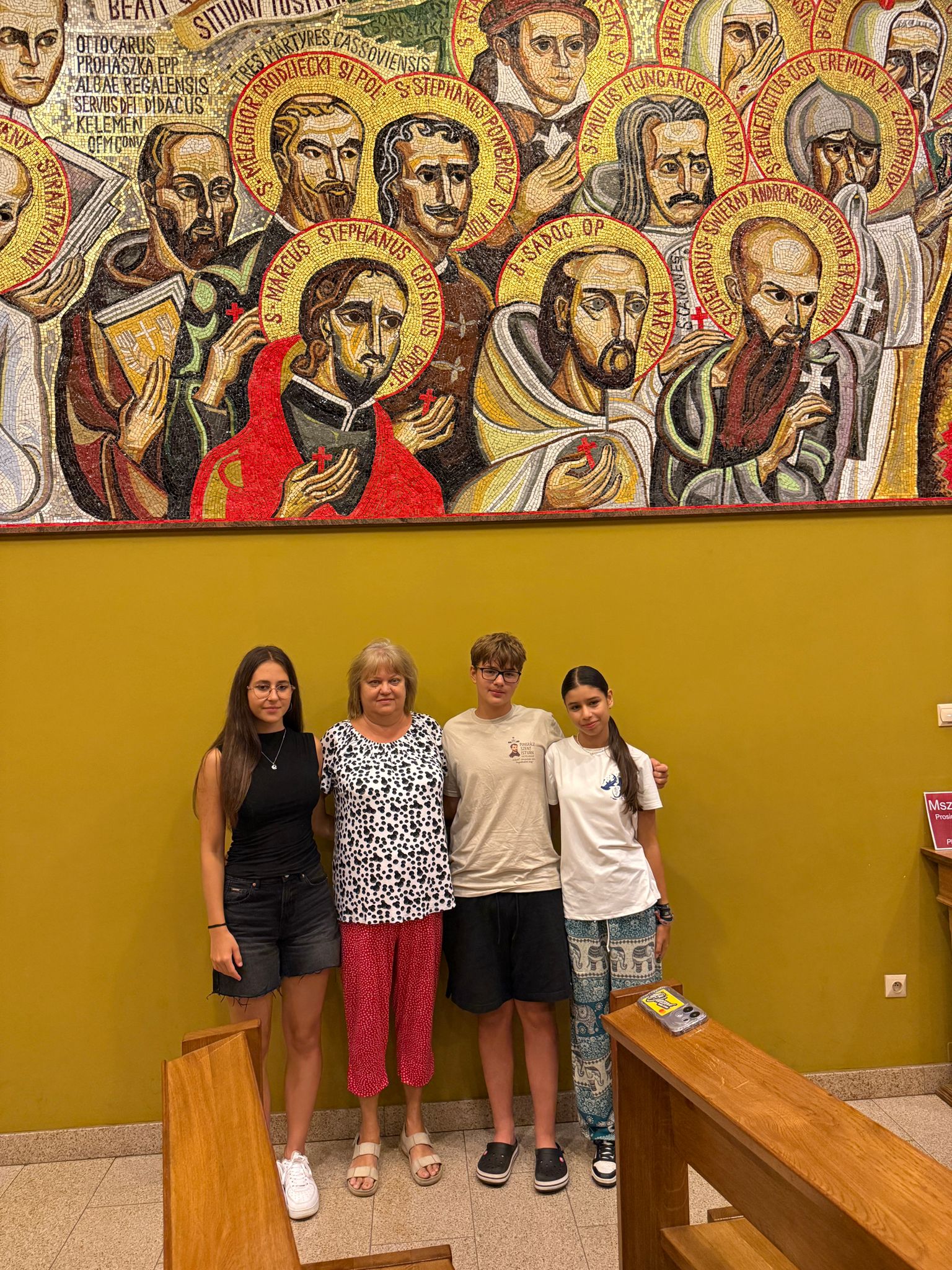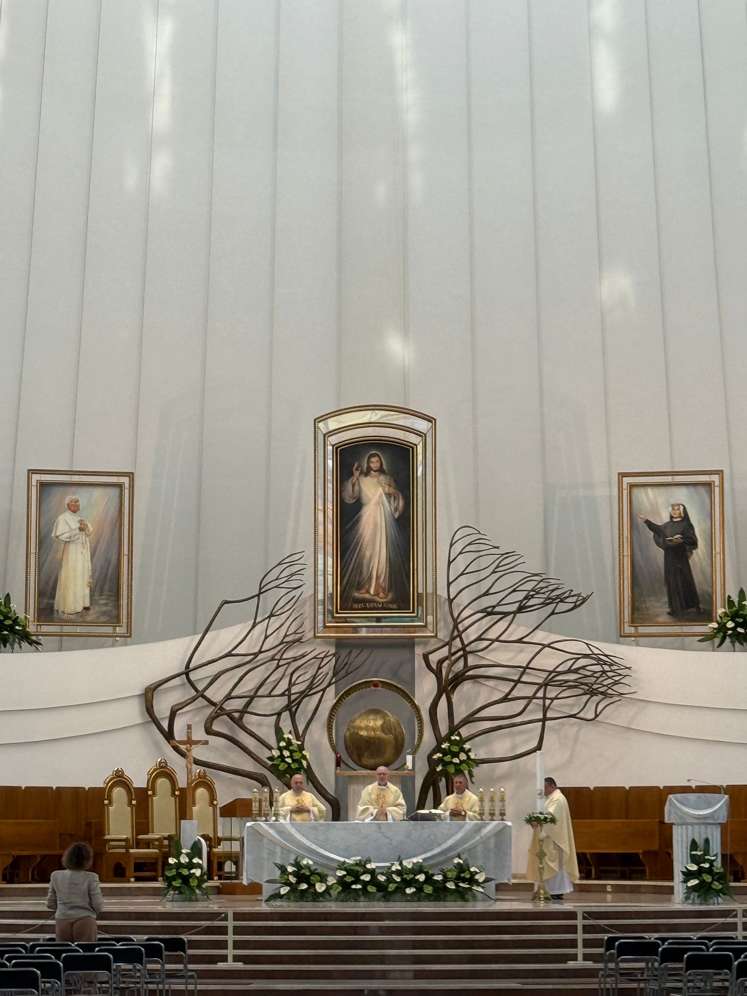 Utolsó előtti napunkat szentmisével indítottuk, majd röviden ellátogattunk az Isteni Irgalmasság bazilikájába, ahol közösen imádkozhattunk. Az altemplomban különös meghatottsággal fedeztük fel a magyar kápolnát, amely lengyel földön is tanúságot tesz népünk hitének jelenlétéről. A kápolna falait díszítő mozaikokon magyar szentek és boldogok tekintenek ránk, mintegy összekötve múltat és jelent, hazát és zarándokhelyet.