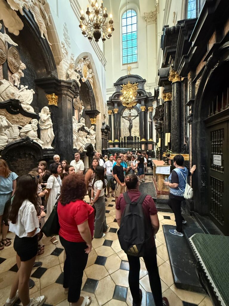 Napunk második felében Krakkó városa került fókuszba. Małkiewicz Aranka idegenvezetésével bejártuk a vár fontosabb pontjait, mint például a Wawel székesegyházat, a Jagelló Egyetemet, a gótikus stílusú Mária-templomot. Utóbbi esetében két különlegességnek is tanúi lehettünk, ugyanis a templom főoltárát szárnyasoltár ékesíti, melynek két oldalszárnyát minden este behajtják. Ennek lehettünk mi is tanúi, a templomból kilépve pedig rövidesen elkezdődött az óránként ismétlődő trombitaszó a templom tornyából, amely az 1241-es tatárjárást idézi.