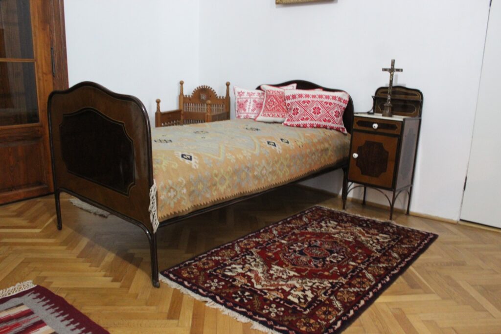 Lépteinket a hálószoba felé irányítjuk, ahol talán az ágy egyszerűsége késztet megállásra először, majd a falon elhelyezett Madonna-kép tereli el a figyelmünk. Ha a dolgozószobát úgy jellemeztem, egyszerű és reprezentatív, a hálószobára azt mondhatnám, puritán és célszerű berendezéssel bír. Azt hiszem, hogy pont ez az egyszerűség és célratörő berendezés volt, ami azt is főhajtásra készteti, aki számára Márton Áron csupán egy valaha élt püspök neve, és nem tud róla, életéről semmit.