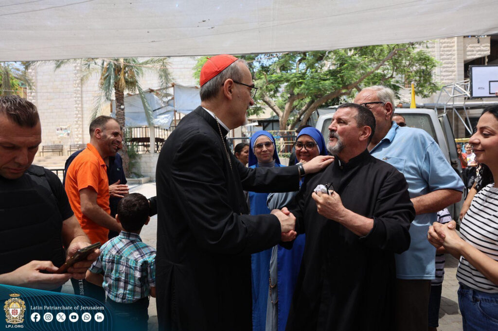 A háború kezdete óta a Szent Porfíriosz görög ortodox egyházközség és a Szent Család-plébánia egyaránt több száz civilnek nyújtott menedéket. Köztük vannak idősek, nők és gyermekek. A latin plébánia épülettömbjében évek óta gondoznak a Szeretet Misszionáriusai Nővérek fogyatékkal élő személyeket is. Gázaváros más lakosaihoz hasonlóan a nálunk élő menekültek maguk dönthetnek arról, lelkiismeretük szerint, hogy mit fognak tenni. Azok között, akik a mi épületeinkben kerestek menedéket, sokan legyengültek, alultápláltak az elmúlt hónapok nehézségei következtében. Az, hogy elhagyják Gázavárost, és délre meneküljenek, számukra felér egy halálos ítélettel. Ezért a papság és a szerzetesnővérek úgy döntöttek, hogy maradnak, és továbbra is gondot viselnek azokra, akik az épületeikben élnek.