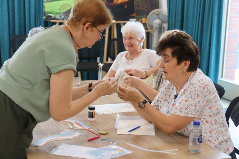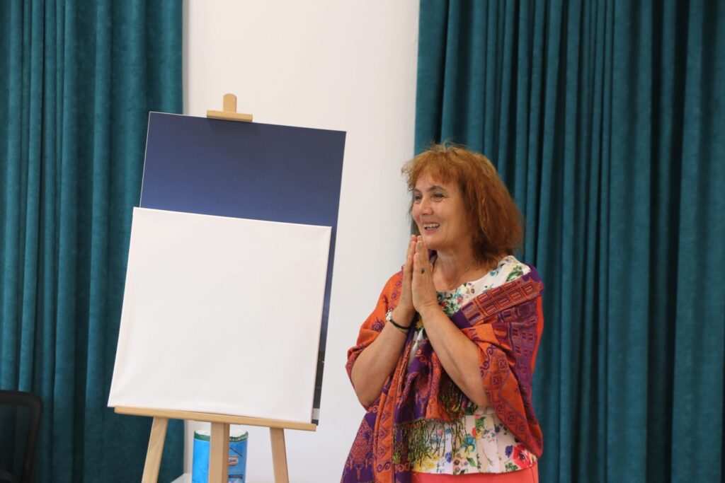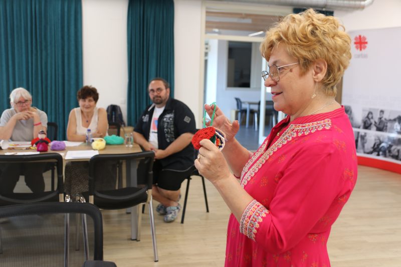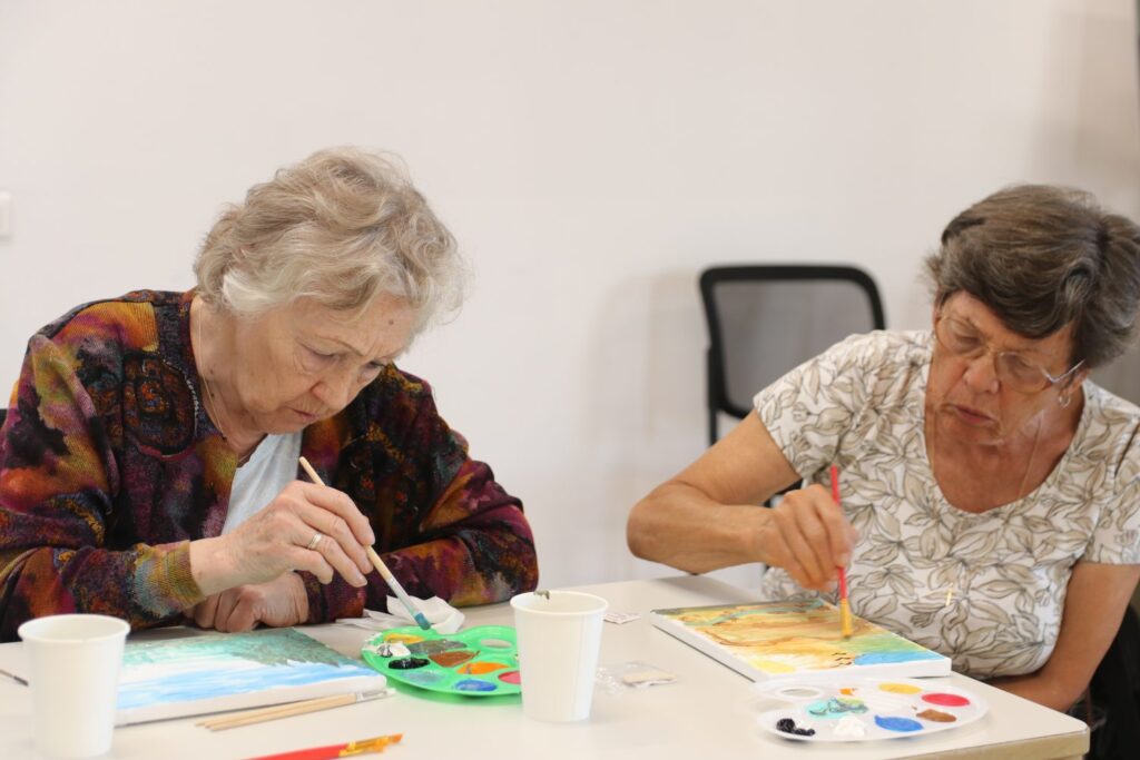 Ezt az áradásélményt tapasztalta meg többszörösen is egy maroknyi időskorú, akik különböző alkotói műhelyekre jelentkeztek be a Caritas marosvásárhelyi Teréz Anya idősek nappali foglalkoztatóközpontjába. Ők a nyár folyamán önismereti munkát segítő festészeti tevékenységen vettek részt dr. Kolumbán Rita mentálhigiénés szakember vezetésével. A papírcsíktechnika trükkjeit egyik kedves társuktól – Bubától – lesték el. Horgolni Czekes Ildikótól és Roth Enikőtől tanultak, akik népszerű Kreatív Klubot működtetnek a városban. Végül képzőművészeti perspektívákat nyitó, festészeti alapokat sajátítottak el Katona Margit óvónőtől, aki szabadidejében maga is sokat és szívesen fest. A kézműves foglalkozásokra elsősorban az újdonságok megtapasztalásáért és a jó társaságért jártak az idősek. De mindeközben fejlődött kézügyességük, sőt önismeretük is. Sokan nosztalgikus hangulatban élték át újra a gyerekkorukból vagy valamely más életszakaszukból ismerős színezés és kézimunka visszaköszönő örömét. Voltak, akik szakmájukból adódóan gyakran forgattak ecsetet a kezükben, és olyan is akadt, aki három éven át tanult festészetet csak azért, hogy jobban megérthesse a képzőművészeteket, és egy régen dédelgetett álmának élhessen. Voltak olyan személyek is, akiknek szokatlan volt a festés, horgolás, barkácsolás, de önmagukon meglepődve lelkesedtek az új helyzetekért.