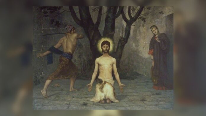 A következőkben egy ilyen vallásos téma feldolgozását szemlélhetjük részleteiben. A Keresztelő Szent János lefejezése egy egyszerű kompozíció. A történet három főalakja látható. Jobbról Heródiás lánya, aki bár táncával elbűvölte a közönséget, mégsem a maga számára kért valamit, hanem anyja kívánságát akarta teljesíteni. Keresztelő János fejére várva áll a háttérben, a tálcával a kezében. Nem őszinte, így nem léphet a világosságra. Balra szintén egy háttérszereplő áll előttünk, aki parancsot teljesít. A katona öl, bár semmi oka rá. Dinamikus, lesújtani kész testtartása, ahol a jobb karját teljesen balra feszíti, még arcát is eltakarja. Ő egy névtelen alak a Szentírásban is. Az alkotás közepén belső fénytől megvilágítva térdel Keresztelő János. Kezei nyitottak, alakja nyugodt. Teljes őszinteségében néz szembe jövőjével. Ő az egyetlen az alkotáson, aki tisztában van saját helyzetével, de mégis önként adja át magát hóhérjának. Lelki tisztasága és egyenessége bevilágítja a történet értelmetlenségét és sötétségét.