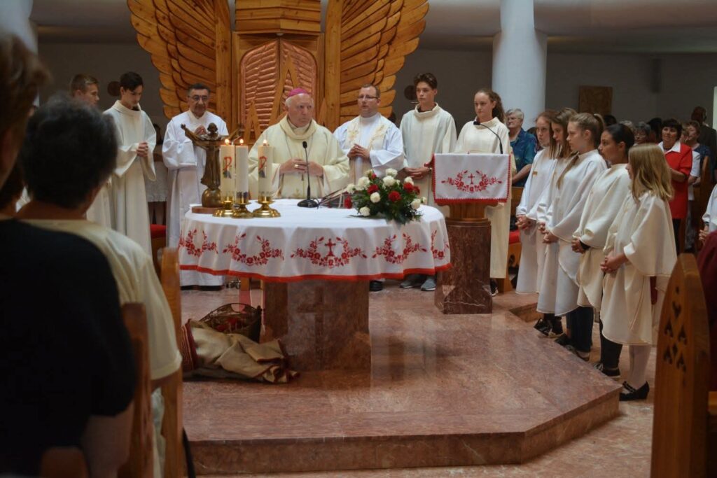 Ezt követően Timár Asztrik ofm templomigazgató bemutatta a kegytemplom történetét, majd felkészültek az esti szentmisére, ahol részt vett minden kiránduló az oltár szolgálatában. Meglepő volt a kegyhely szentélyének tágassága, szinte bátortalanná tette a szolgálatban a fiatalokat, mégis örömmel voltak jelen a kegyhely oltáránál nemcsak egyszerű hívőként, hanem ministránsokként segítkezve.