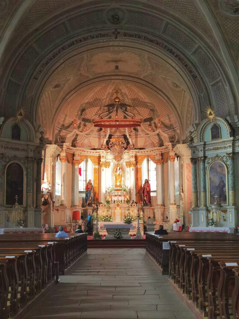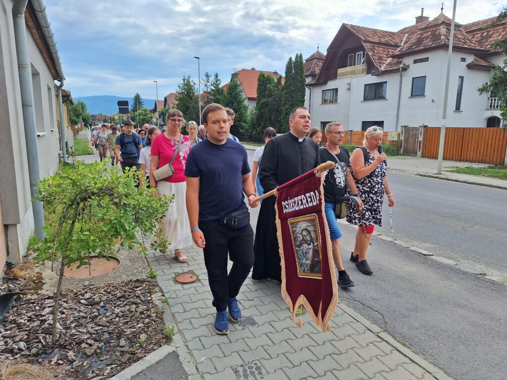 Első állomás a csíkszeredai Szent Kereszt felmagasztalása templom volt, amelynek történetét Küsmödi Csongor Ignác segédlelkész mutatta be. Az 1758-ra befejezett templomot a Szent Kereszt felmagasztalására szentelte fel Batthyány Ignác erdélyi püspök 1784-ben. Ennek a régi épületnek sok értékére hívta fel a káplán mindenki figyelmét interaktív formában, amelyet a minstránsok nagyon élveztek, s a feltett kérdésekre megpróbáltak felelni. Küsmődi segédlelkész hangulatoldónak megtanította a szentévi himnuszt, a „Benned bízom, Jézus szép reményem”-et.