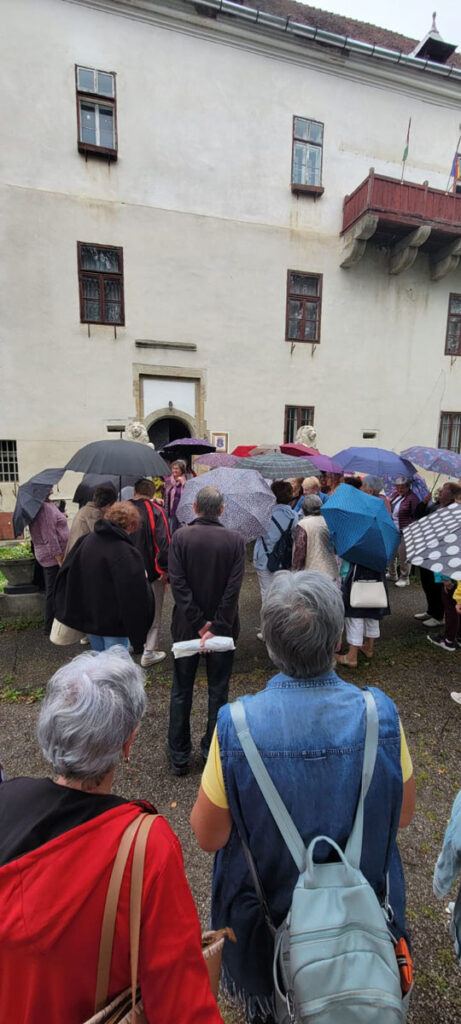 A kirándulás következő megállója Erdőszentgyörgy volt, ahol egy jól megérdemelt ebédszünet következett. A közös étkezés nemcsak testi felüdülést nyújtott, hanem a baráti beszélgetések révén lelkileg is feltöltötte a résztvevőket. A nap utolsó állomása a Rhédey-kastélyhoz vezette a csoportot. Az épület történelmi jelentősége kiemelkedő, hiszen itt élt gróf Rhédey Klaudia, akinek leszármazottai a brit királyi családhoz kapcsolódnak. A kastély történetei mélyen megérintették a látogatókat, miközben a helyszín szépsége is lenyűgözte őket.